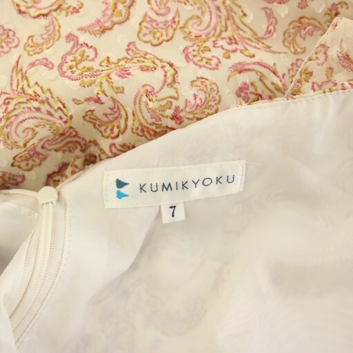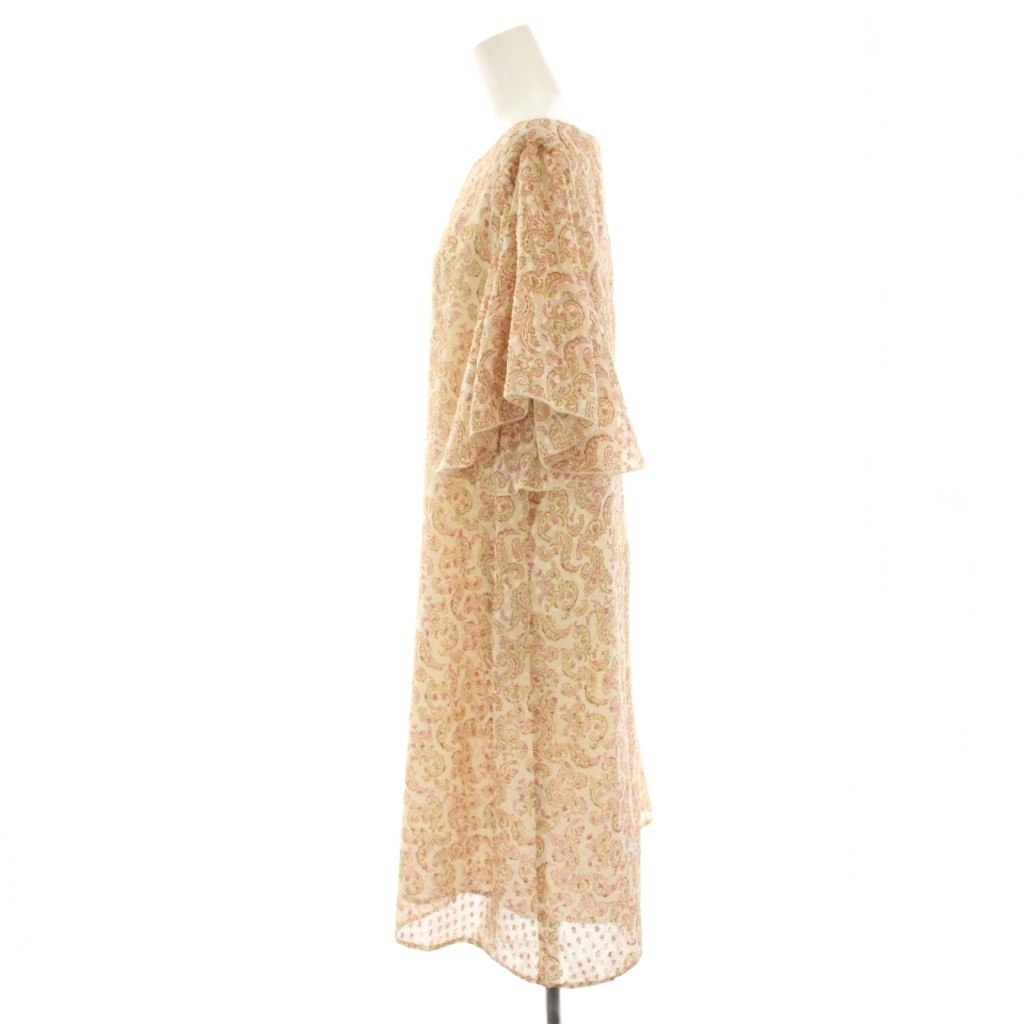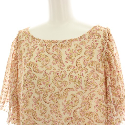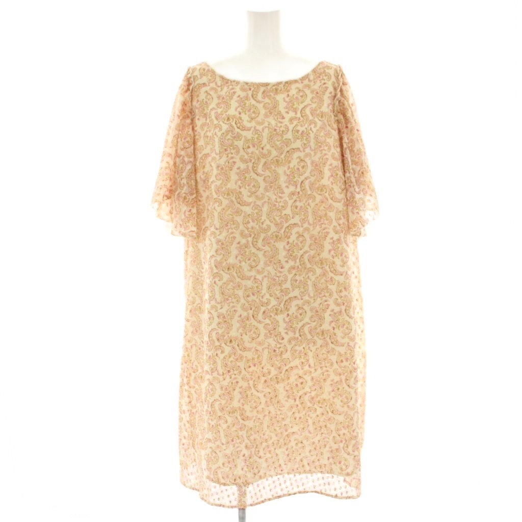 クミキョク 組曲 KUMIKYOKU ワンピース ひざ丈 半袖 フレアスリーブ シアー 総柄 7 ベージュ ピンク OPWLHA0204 /HN レディース