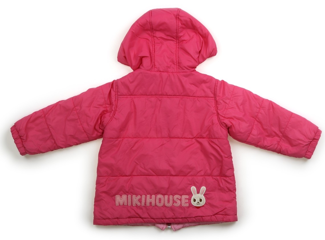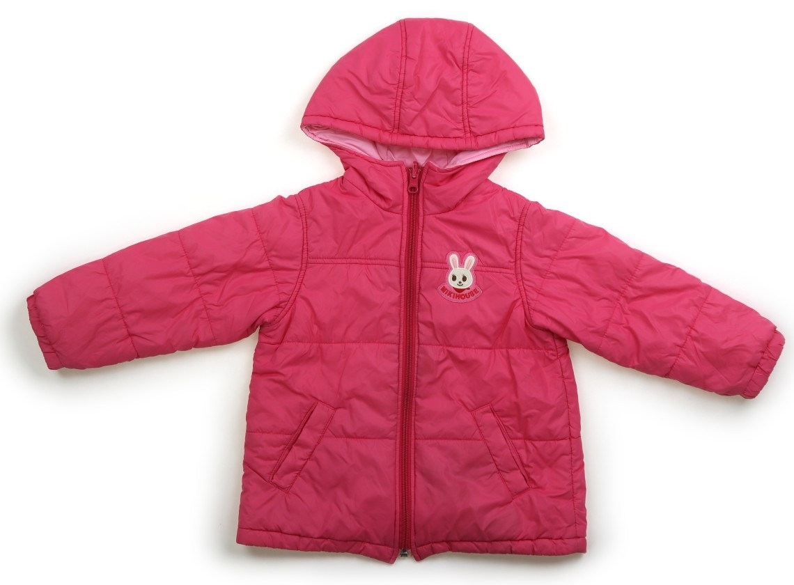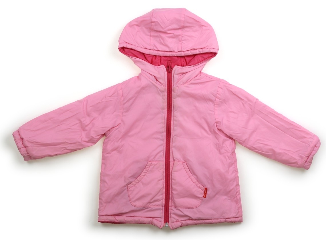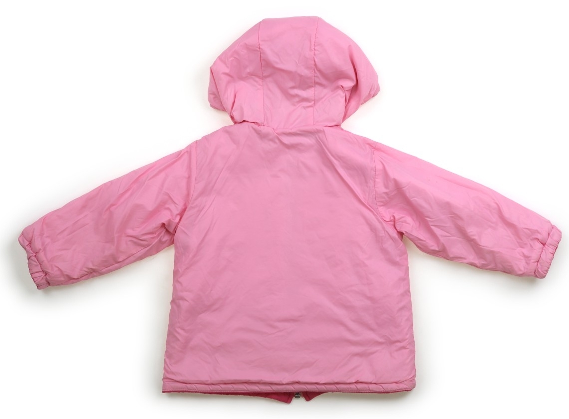 品質タグが切られています。中綿入り。フードは縫い付けです。リバーシブル仕様。両面ともに多数の汚れが見られ、使用感があります。外遊び用としていかがでしょうか?