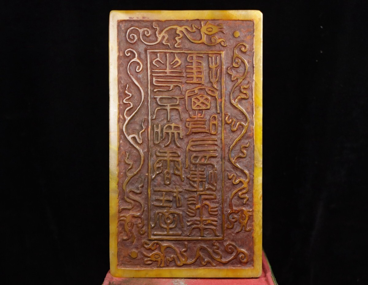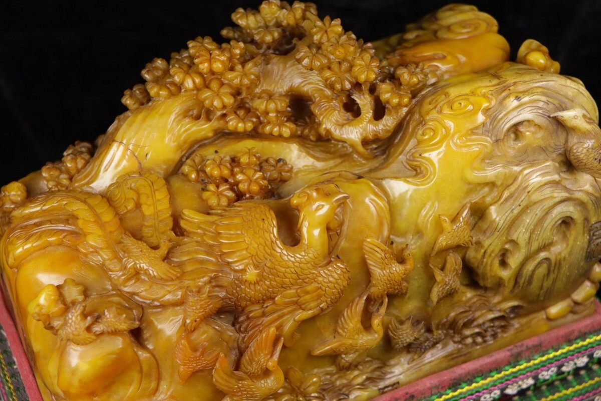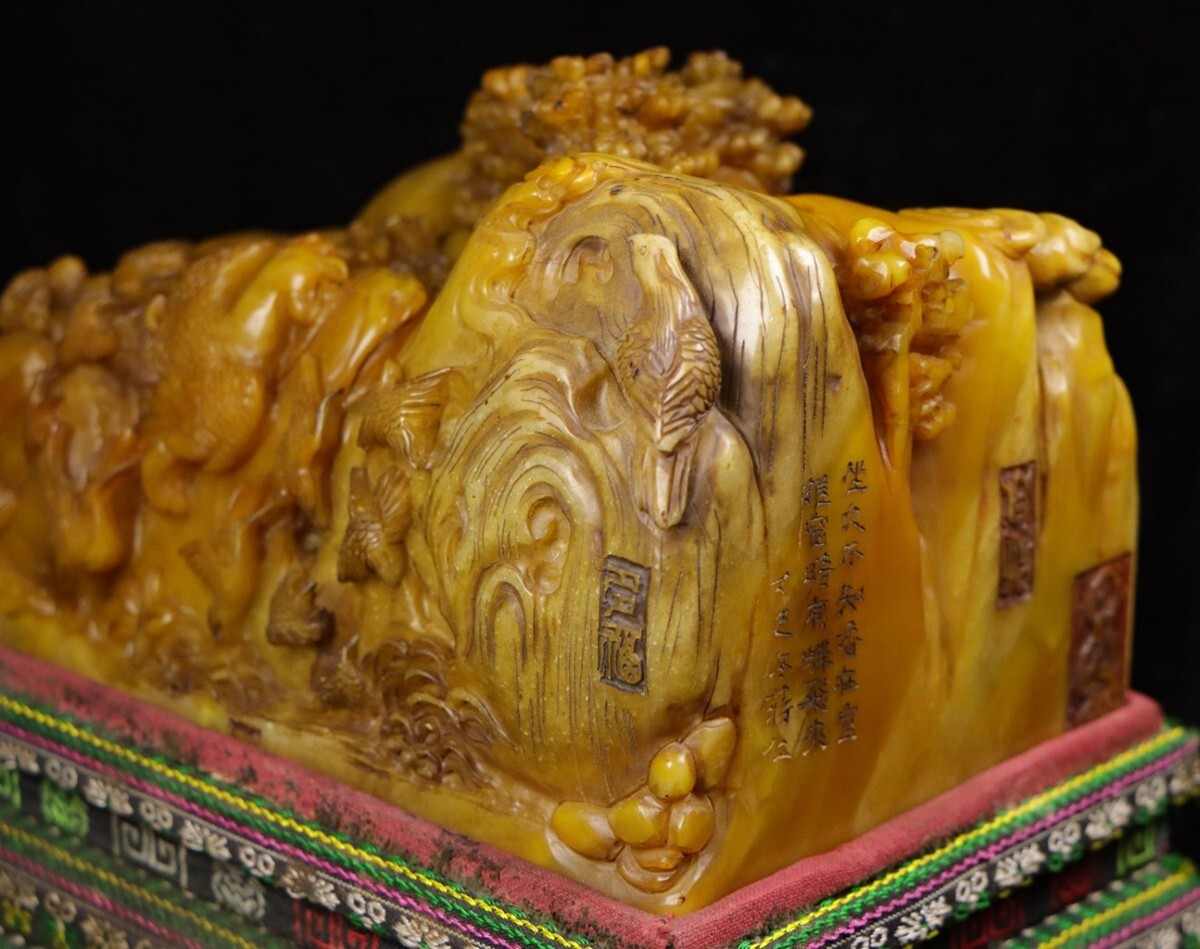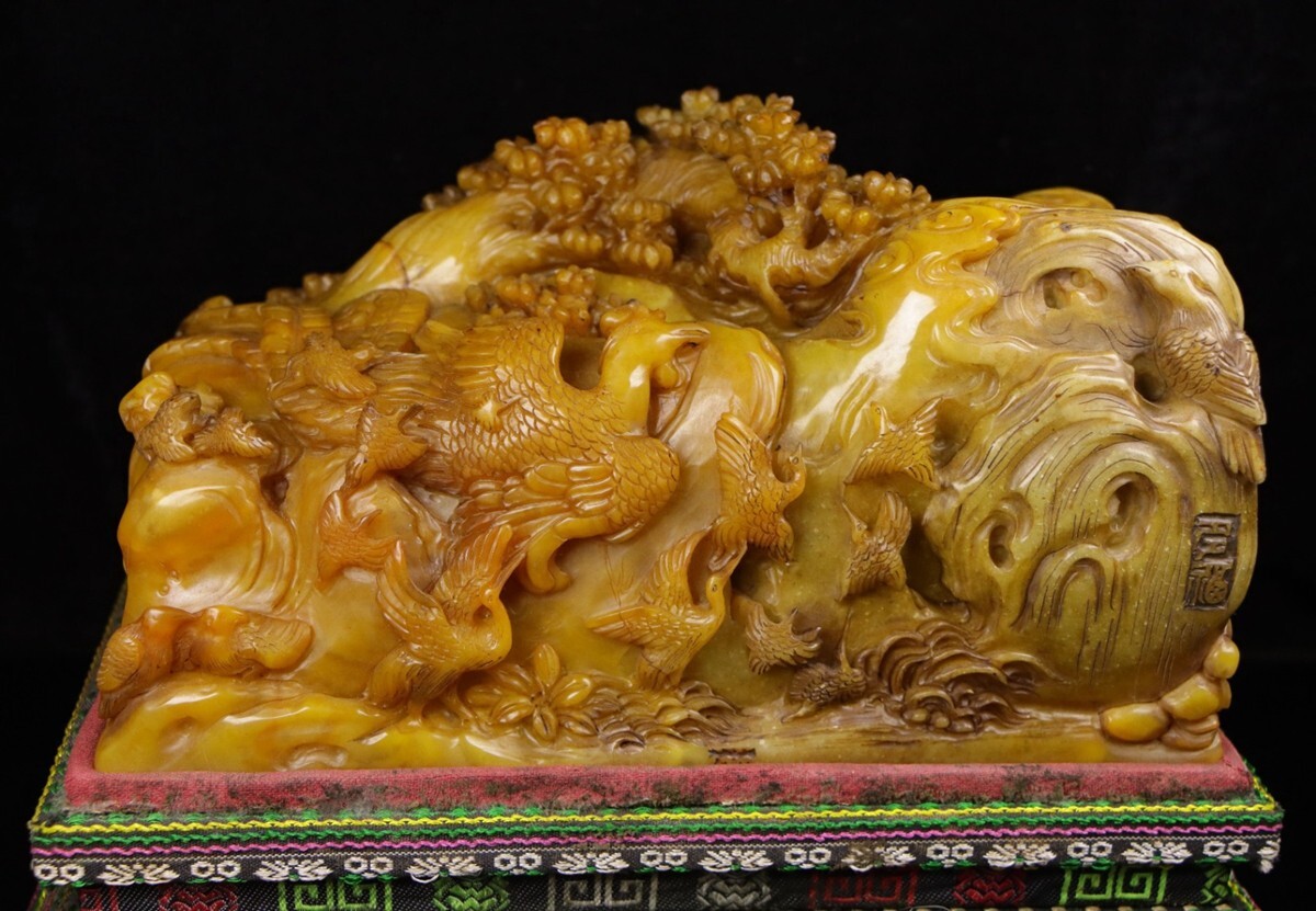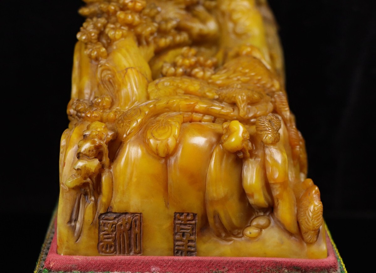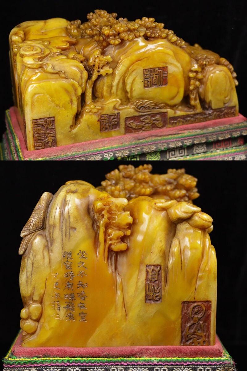 「清 蒋仁 老寿山石 田黄石彫り 鶴鹿同春 閑章印章 擺件」極細工 擺件 古賞物 中国古美術 旧蔵出
