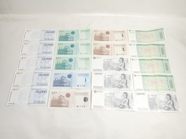 1012[i]韓国 商品券 ショッピング券 87万ウォン分 新世界百貨店 ロッテ百貨店 瑞山愛商品券 ギフト券 | ||