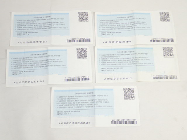 商品説明 | ご覧いただきありがとうございます。 韓国 商品券 ショッピング券 87万ウォン分 新世界百貨店 ロッテ百貨店 瑞山愛商品券 ギフト券 この機会に是非どうぞ♪ 〇商品はお写真の物で全てです。 数種類の商品券が混合しておりますが、当方専門的な知識がございません。 お詳しい方に落札いただいた方が、トラブル回避になるかと思います。 このままでのお渡しになりますのでノークレームノーリターンの範囲でのご入札をお願い致します。 〇画像はデジカメ撮影となります。 忠実な再現を心がけておりますが、若干お色が異なる場合が御座いますので、ご了承ください。 〇保管時によるスレキズ、汚れ、変色等が御座います。店舗販売の様な完品をお求めの方、商品状態に神経質な方のご入札はご遠慮ください。 〇タイトルの最初の英数字は、当方の商品管理番号です。 商品に一切関係ございませんので、ご理解いただけますよう、 お願いいたします。 | |