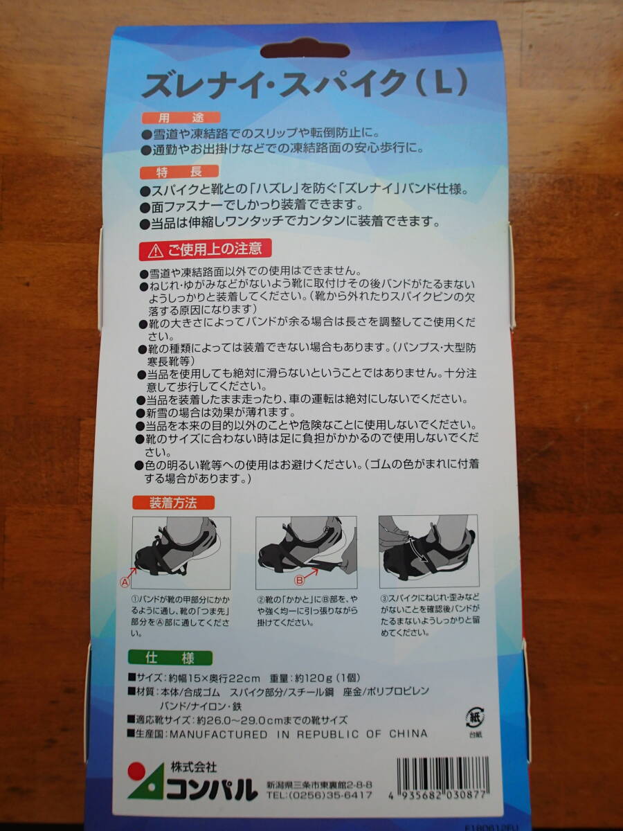 未使用 「ズレナイ・スパイク」 サイズL(26.0~29.0㎝まで) 雪/氷 すべらない 転倒防止 株式会社コンパル