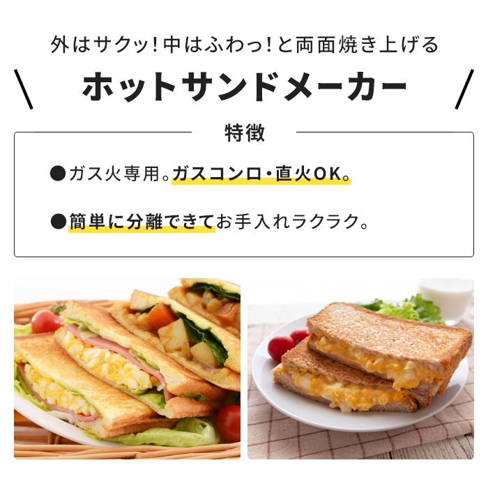 | ホットサンドメーカー 直火 着脱式 ホットサンドプレート 両面 フライパン 耳圧着なし かんたん 取り外し 直火専用 軽量 アルミ キャンプ アウトドア ホットサンドトースター ホットサンド焼き器 分解 洗える ソロキャン 朝食 朝ごはん カフェ お手入れ 簡単 耳まで カリ ふわ おすすめ |