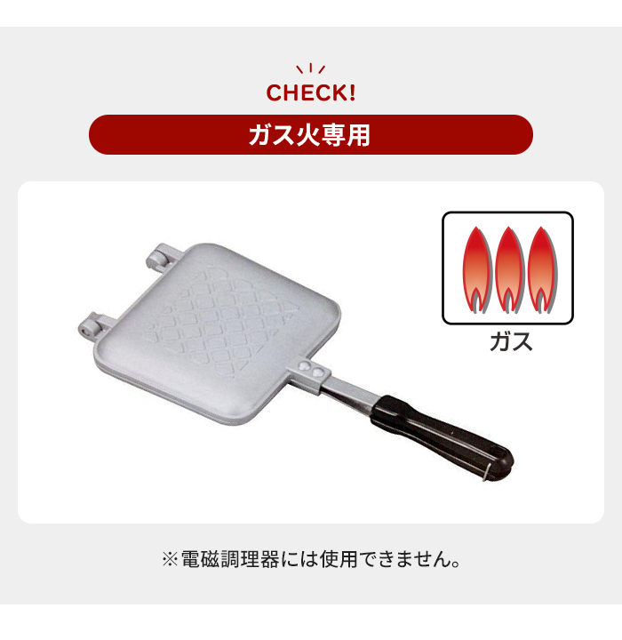 | ※【同シリーズ】のリンクは当店のヤフオク店のページへ進みます。 【ホットサンドメーカー】 ● ガス火専用 ● IH対応 ※このページは[ホットサンドメーカー ガス火専用]を販売しております。 |