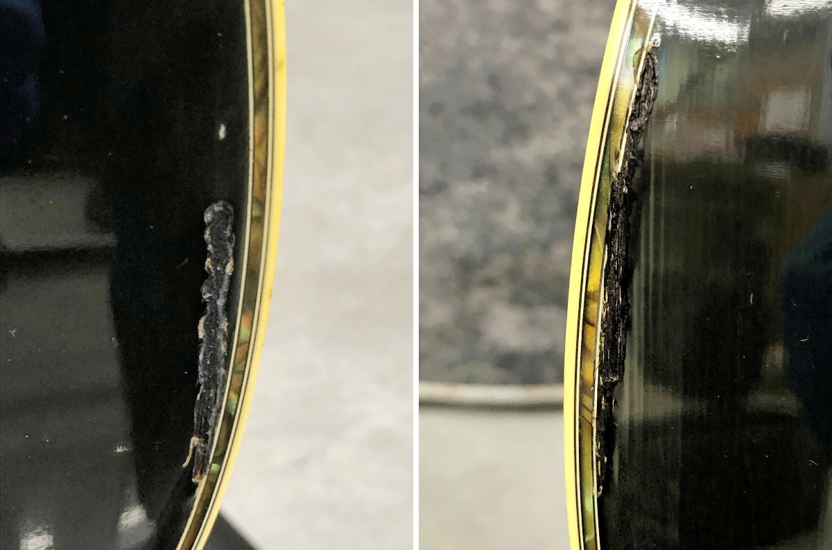 ◆外観◆ ・★外観にキズ、汚れ、使用感があります。 ・★弦長(スケール):約644mm ・★ナット幅:約39mm ・★ボディに大きな傷が2か所見受けられます。 ・★ケースの金具が一か所破損しています。 |