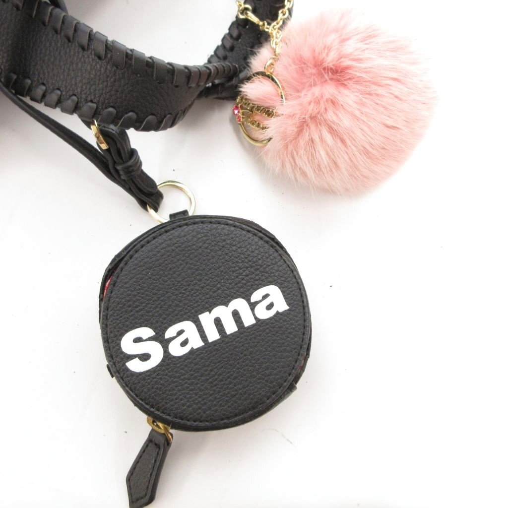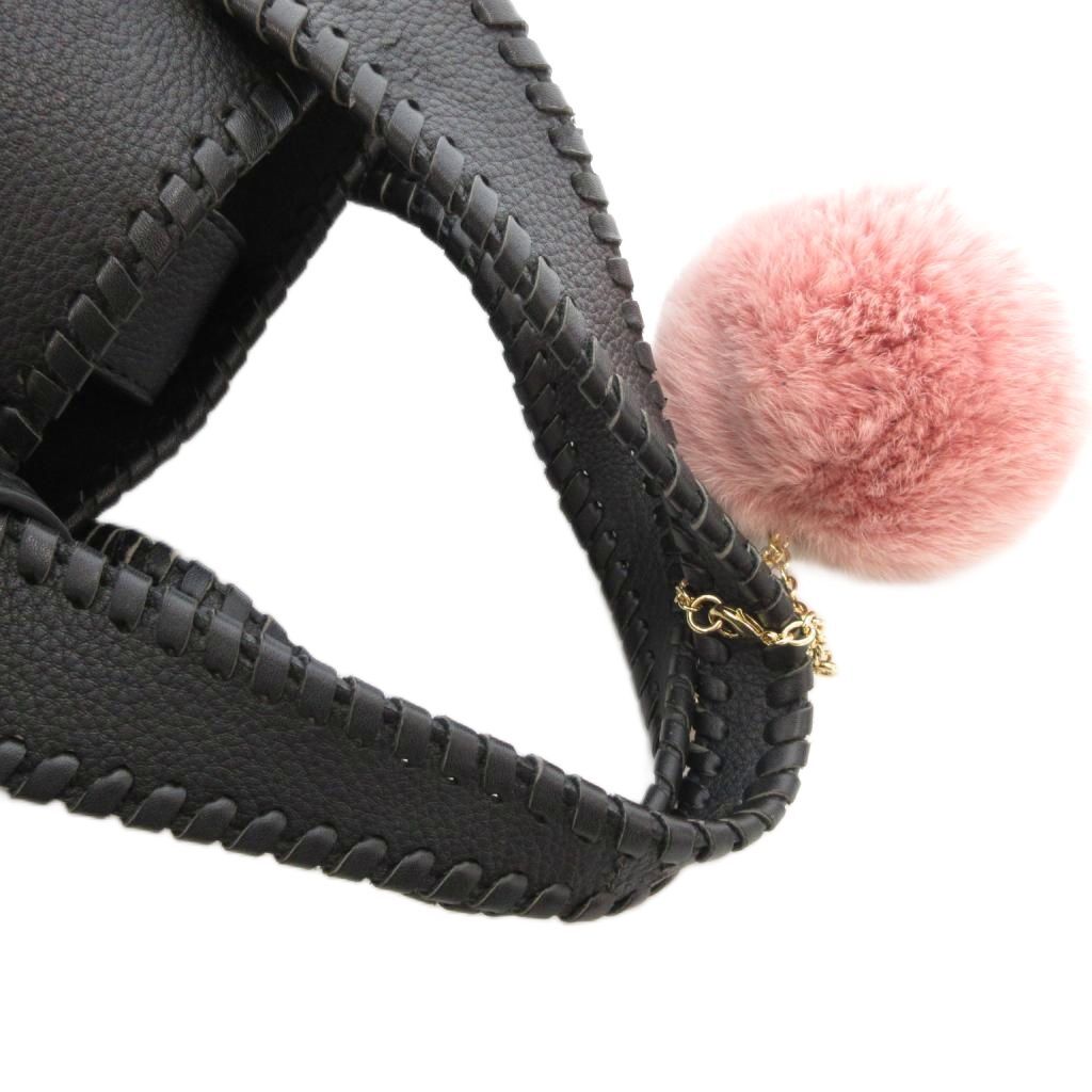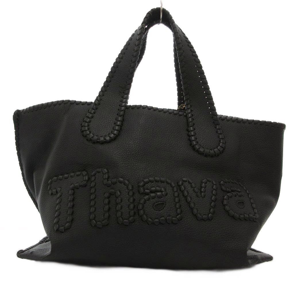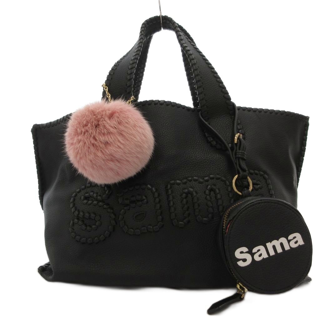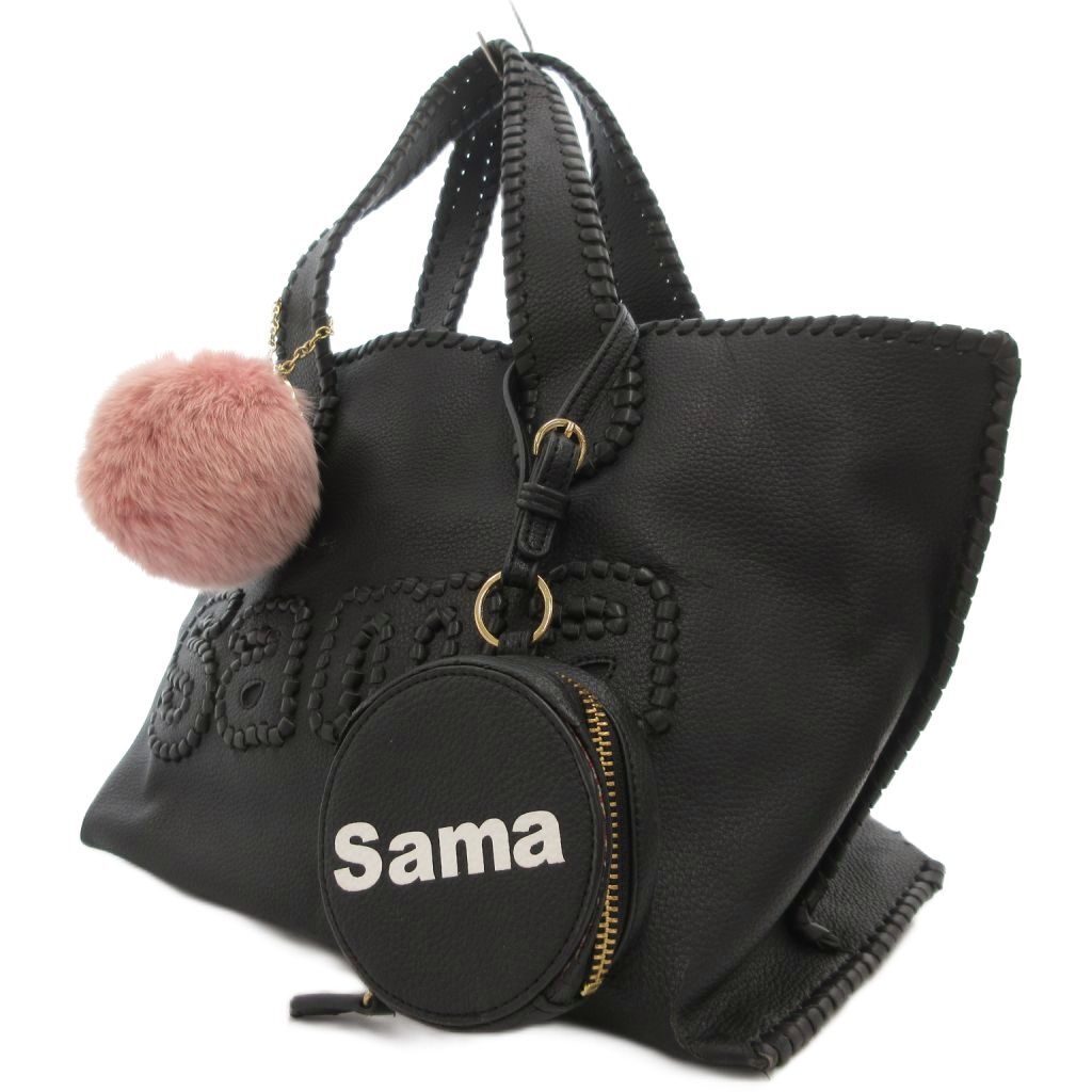 サマンサタバサ Samantha Thavasa ビッグロゴ トートバッグ 手提げカバン レザー 皮革 ファーチャーム ポーチ付 黒 ブラック /BS
