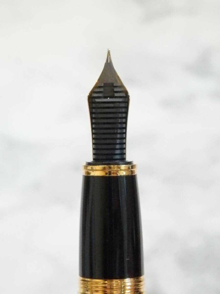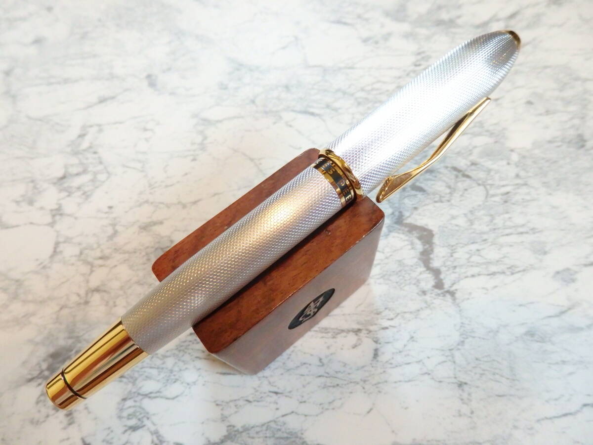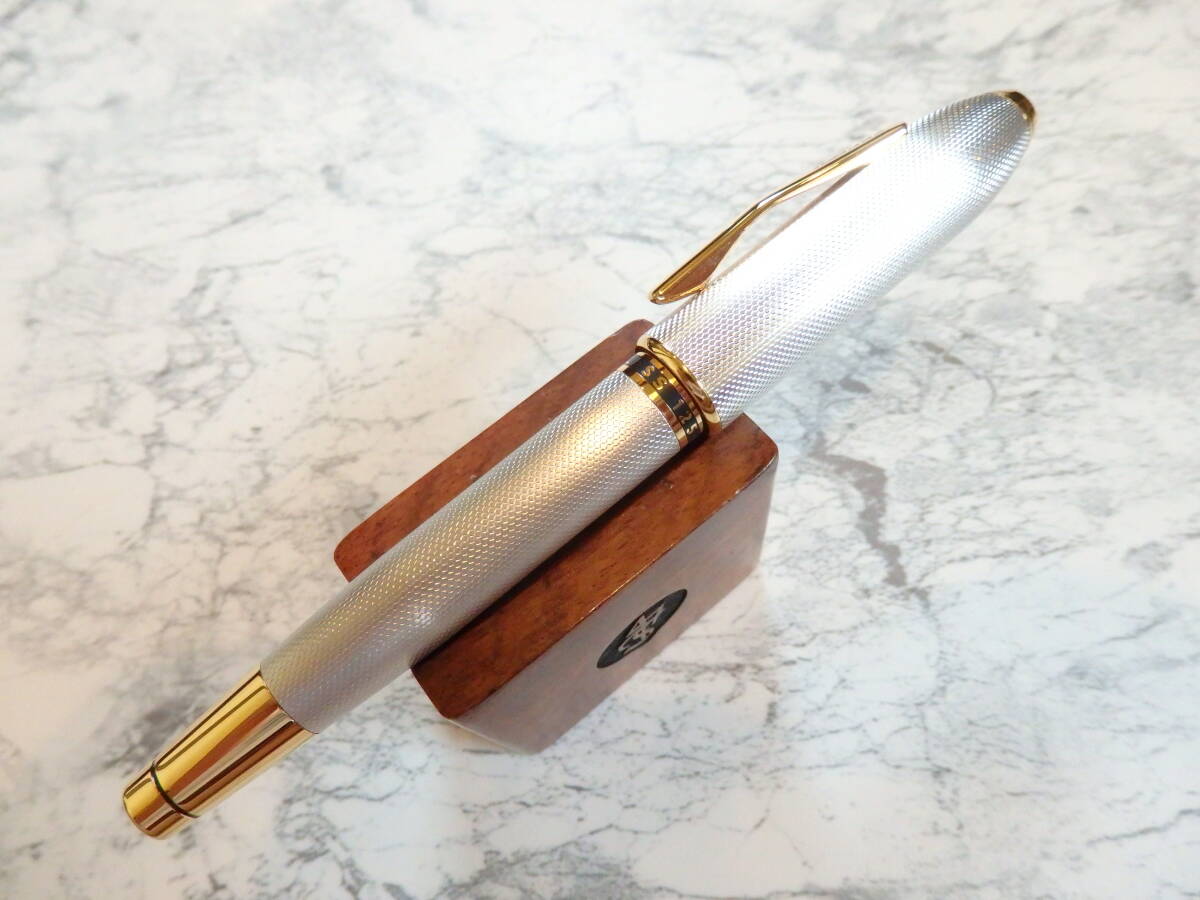 プラチナコーティングされた軸が輝き、ペン先は18K750ソリッドゴールドFニブが奢られた豪華な逸品です。