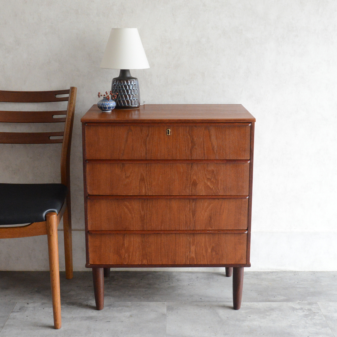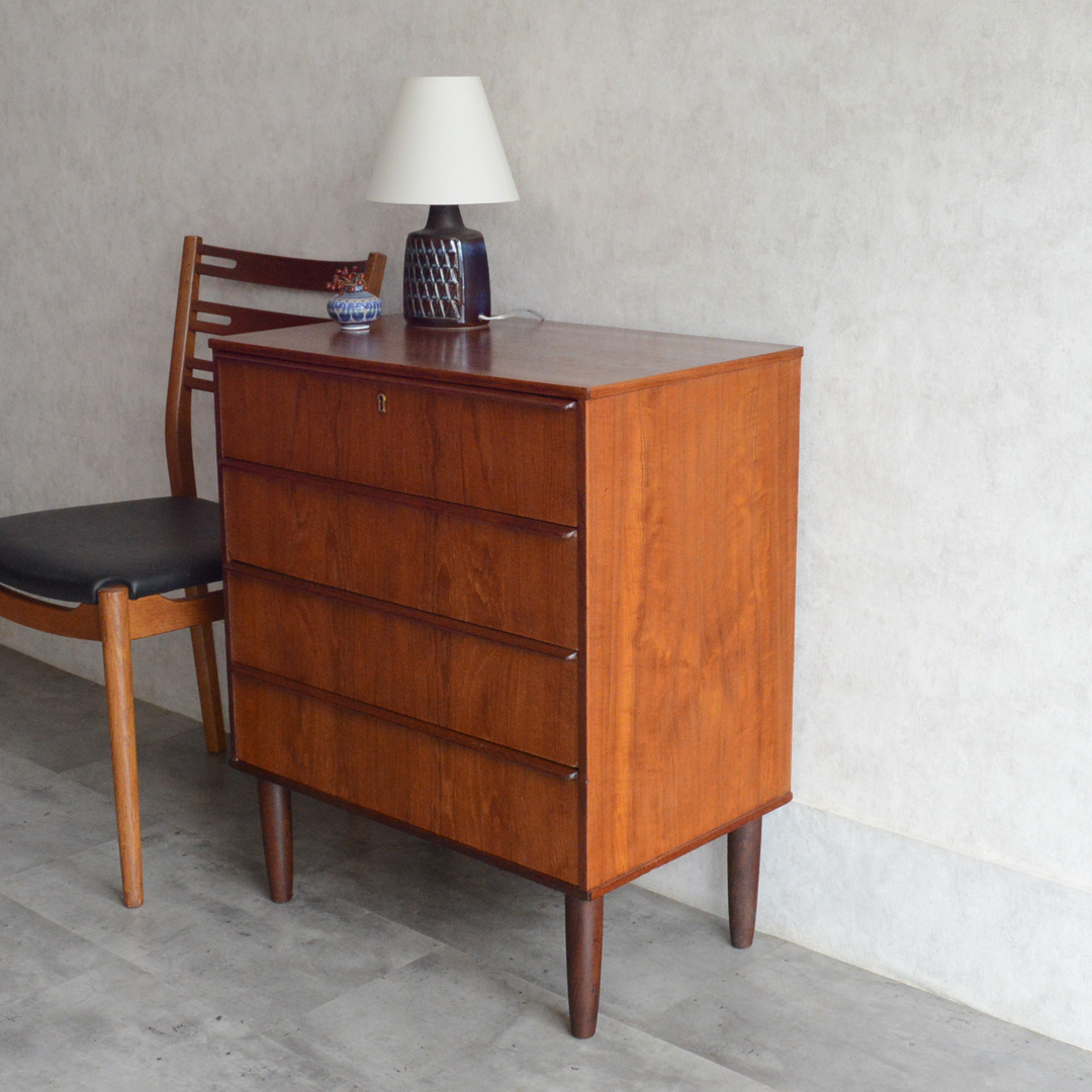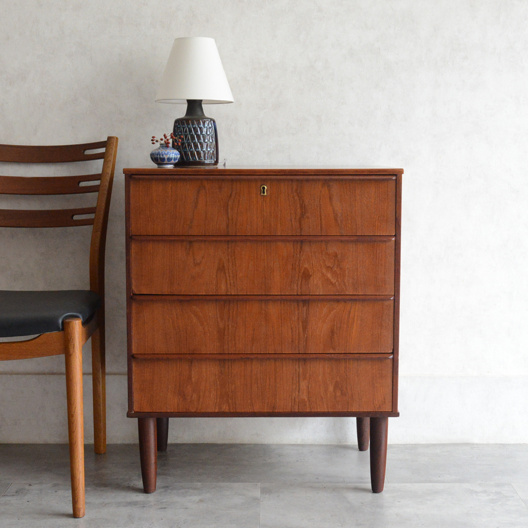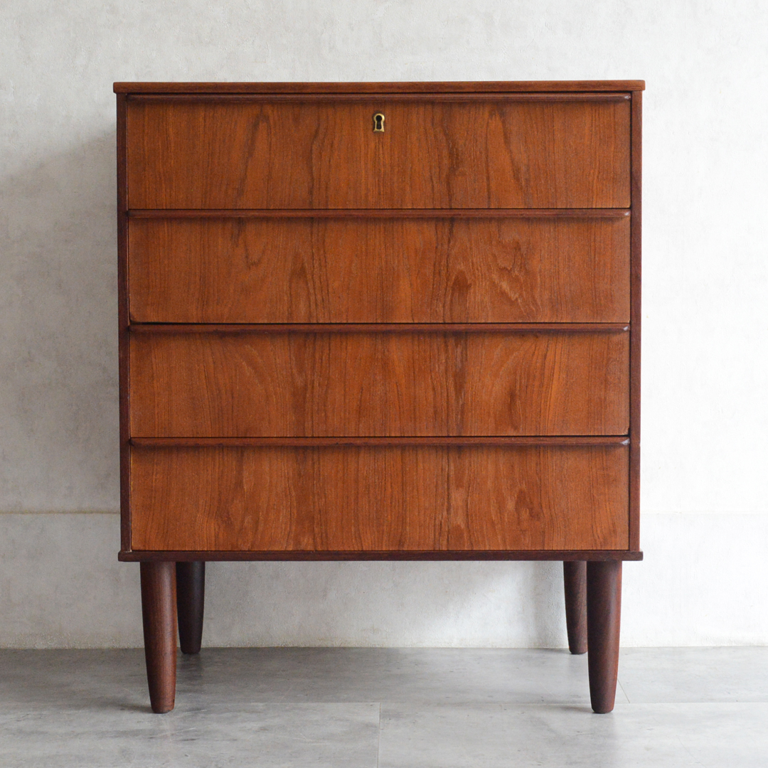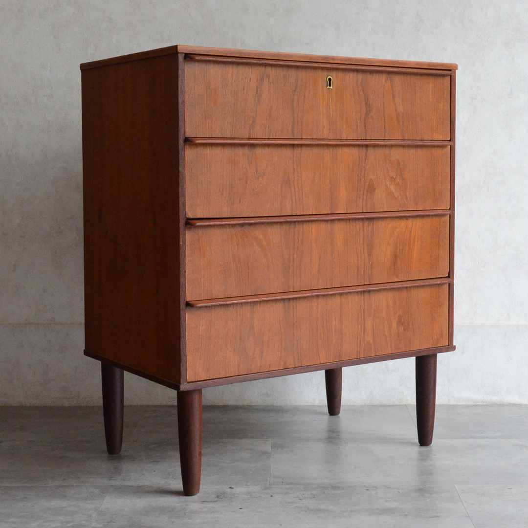 デンマーク 北欧ヴィンテージ チーク 4段チェスト 北欧家具 ミッドセンチュリー 洋タンス 北欧デザイン サイドチェスト メンテナンス済