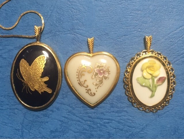 ◆日米英名窯 大倉陶園など 綺麗な磁器ペンダント 3点セット◆r