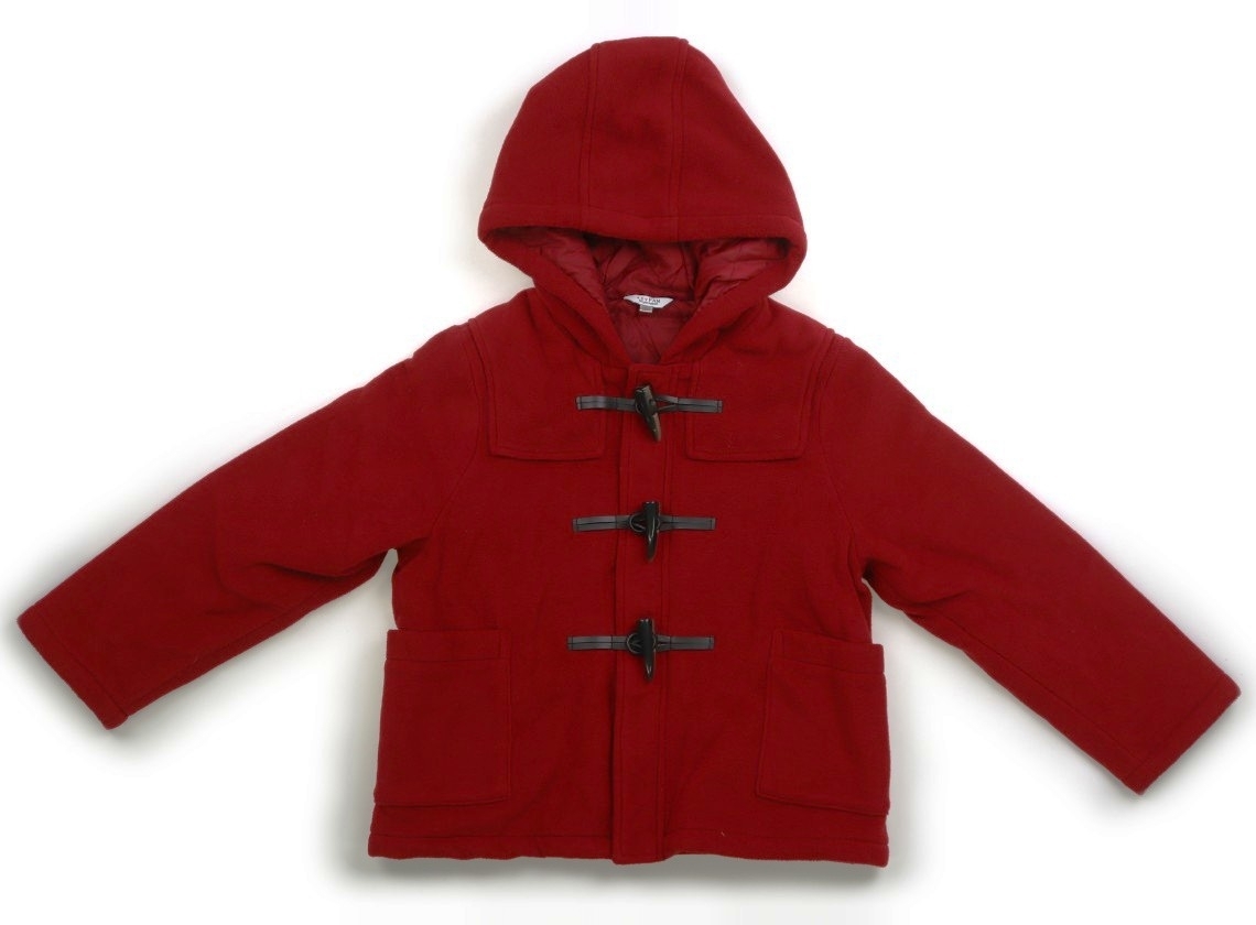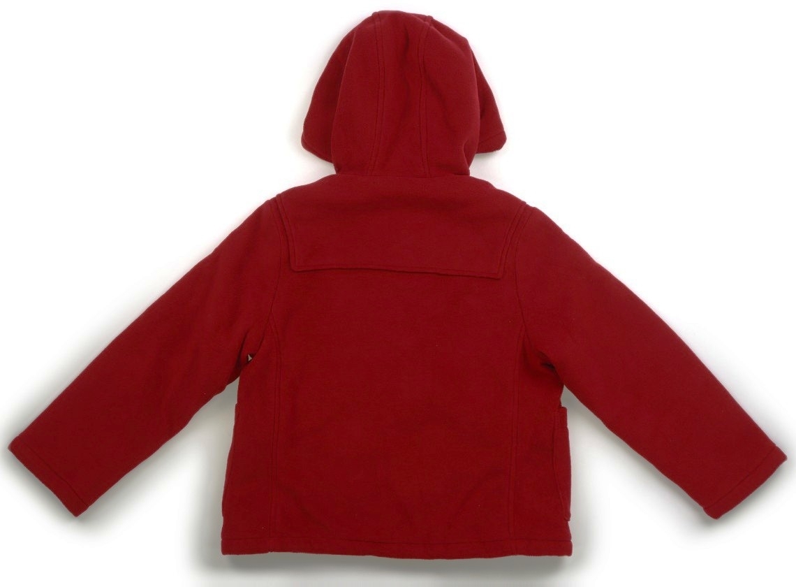 フリース生地のダッフルコート。裏地と中綿はポリエステル。フードは縫い付けです。全体に使用感はありますが目立った汚れはなくまだお使いいただけそうです。