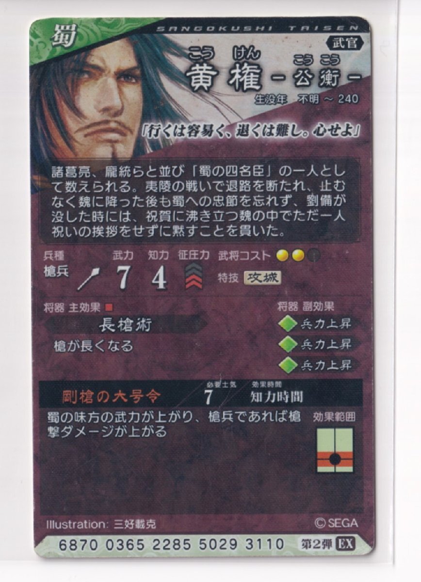 三国志大戦4 旧枠 蜀 2弾 R EX 黄権 剛槍の大号令 長槍術 コレクション用 【3子09】