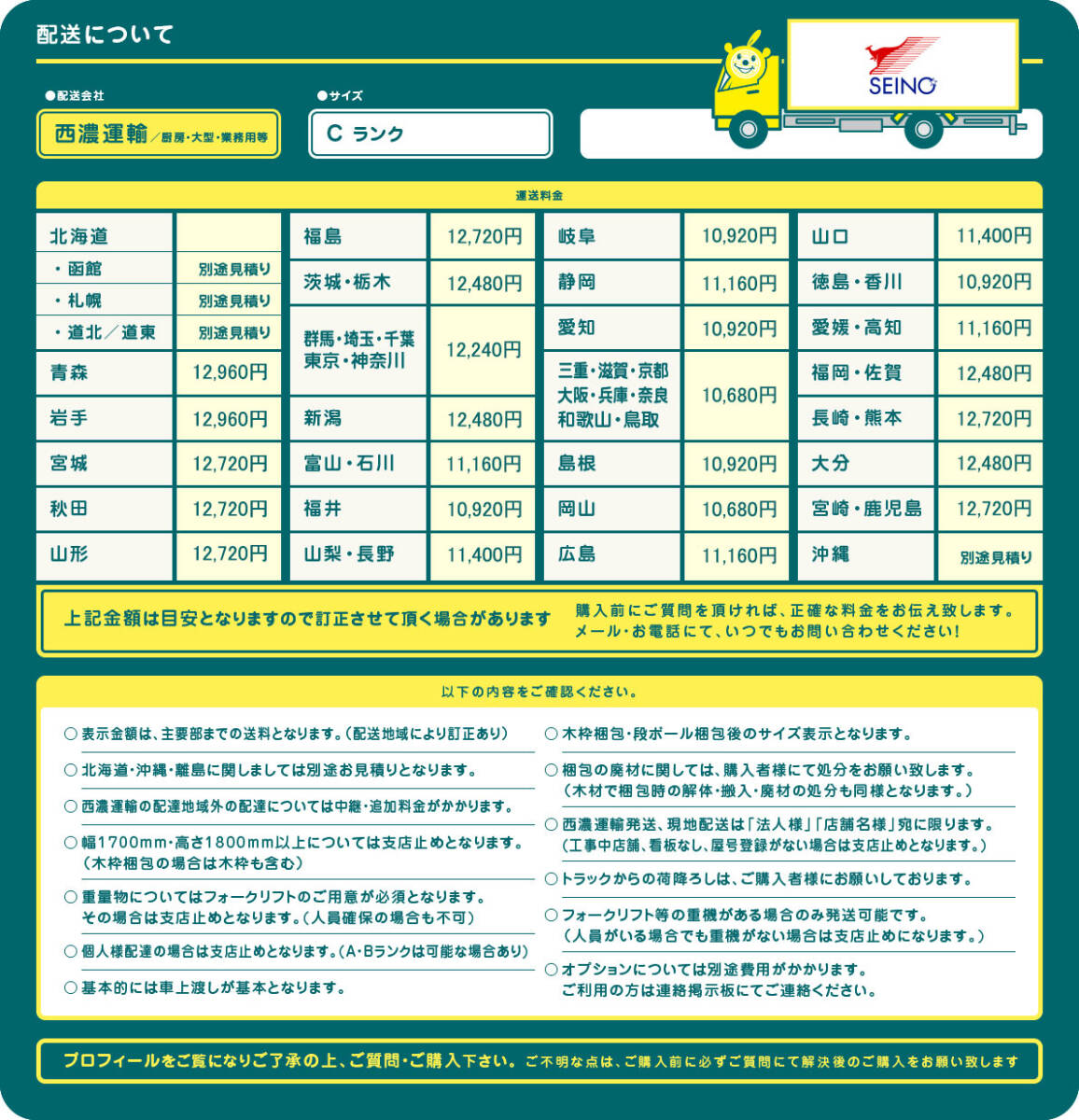 ▲西濃運輸発送の場合はトラックからの荷降ろしはご購入者様の方でお願いしております。