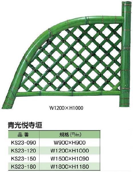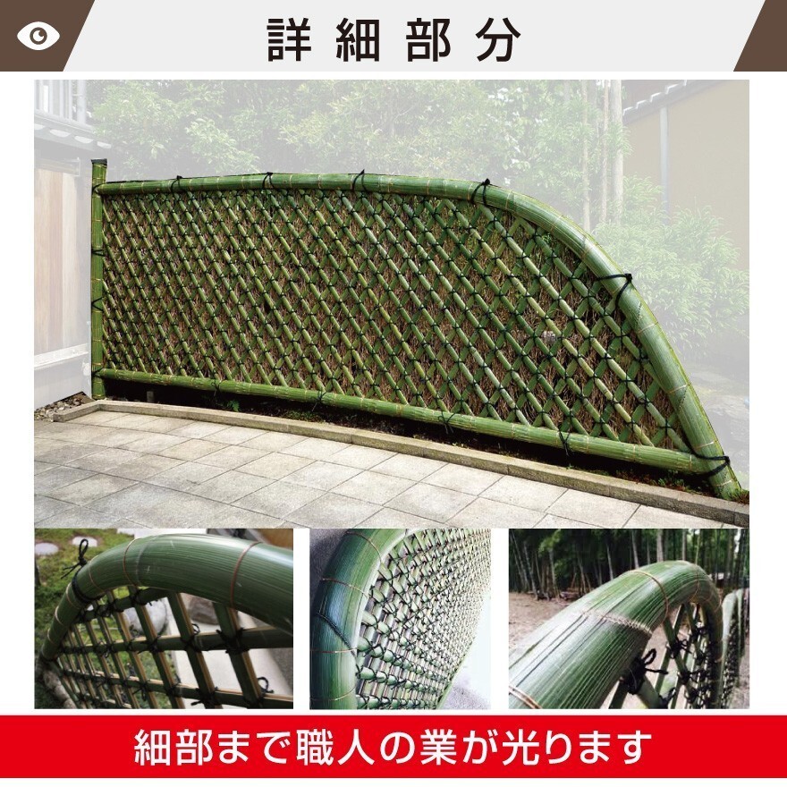 商品詳細 | この度は数ある商品の中から当商品を閲覧頂きまして有難う御座います。 販売価格 63,910円(送料・税込み) 青竹の涼しげな風情漂う青竹仕切垣。 天然竹を一つひとつ丁寧に編み込んだ職人技の光る逸品です。 時間とともに移りゆく天然竹の色、風合いをお楽しみ下さい。 【商品詳細】 商品名:青光悦寺垣 サイズ:幅 1200mm×高さ 1000mm 材質:国産天然竹 青竹は採れる時季(主に10、11月頃)が限られている為、ご提供できない場合が ございます。ご注文前に納期を必ずご確認下さい。 |