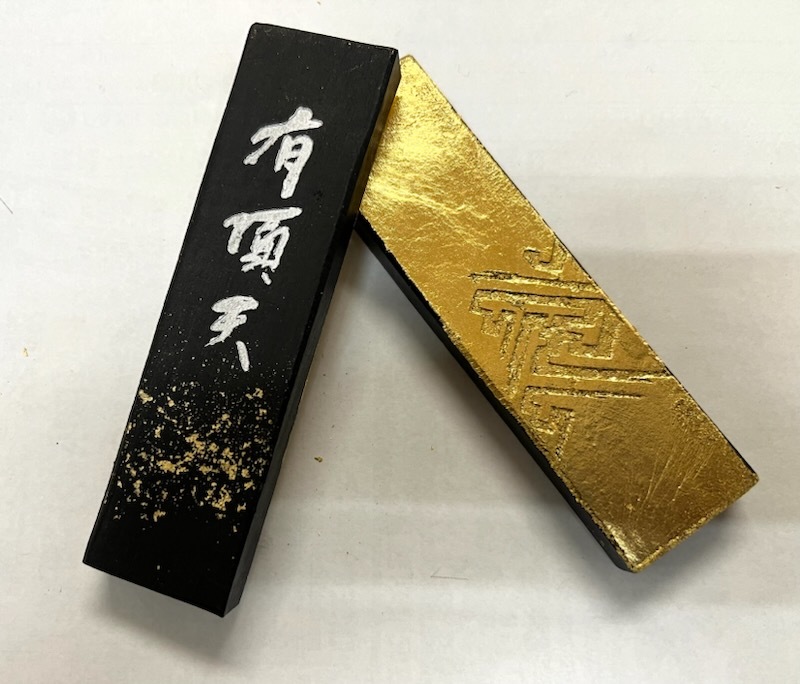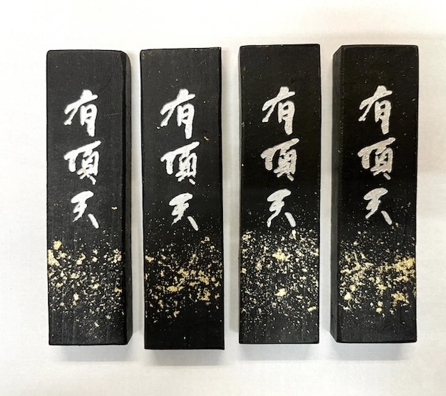 書道用 固形墨 大型「有頂天」桐油煙製の出品です。 強い艶を発し伸びも抜群の黒茶系の墨色です。 サイズ約 縦129㎜横36㎜厚さ15㎜ 重さ87g 全て新品未使用 桐箱入りです。 土日は休みの為取引連絡、発送が出来ません。 平日のみの対応になります。