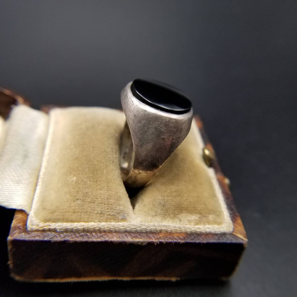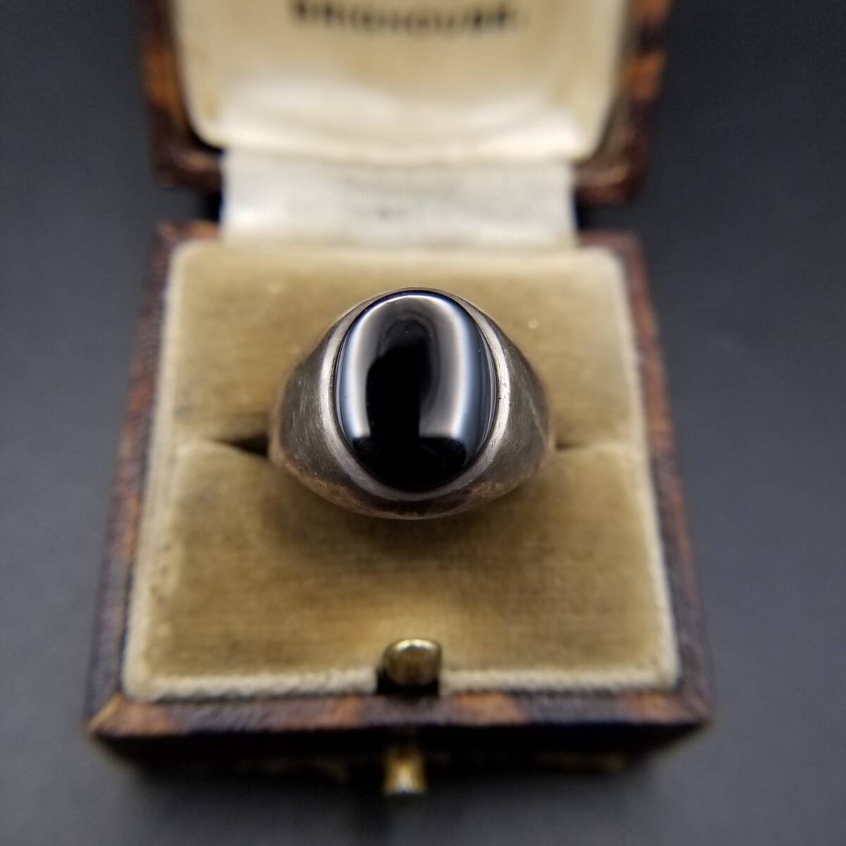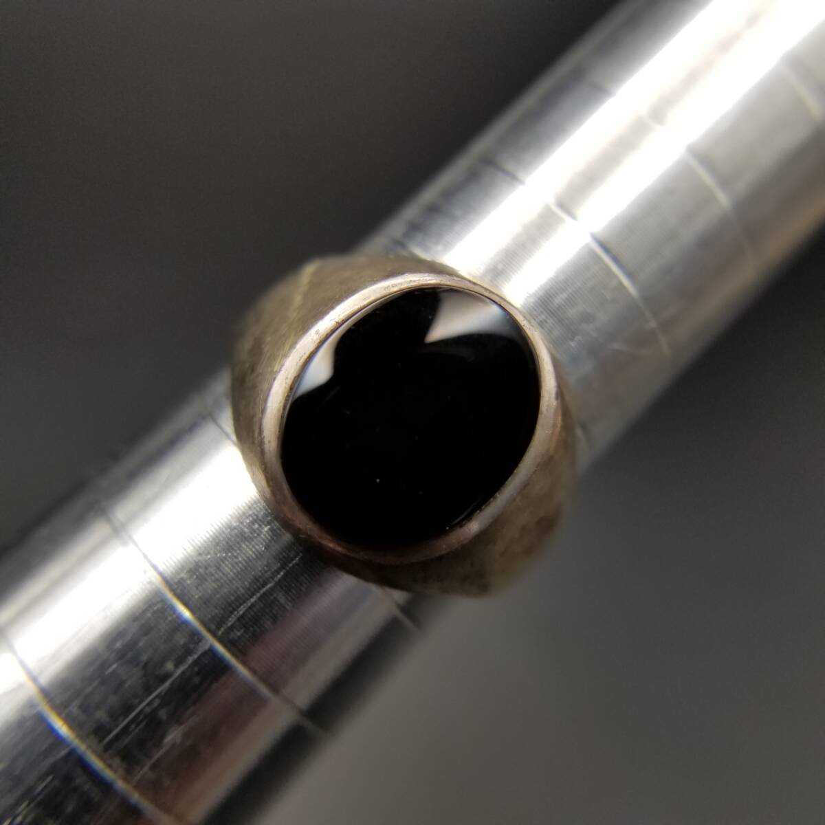 オニキス オーバル インレイ 925 シルバー シグネット リング 指輪 銀 ミニマル レトロ シンプル ユニセックス R16-R