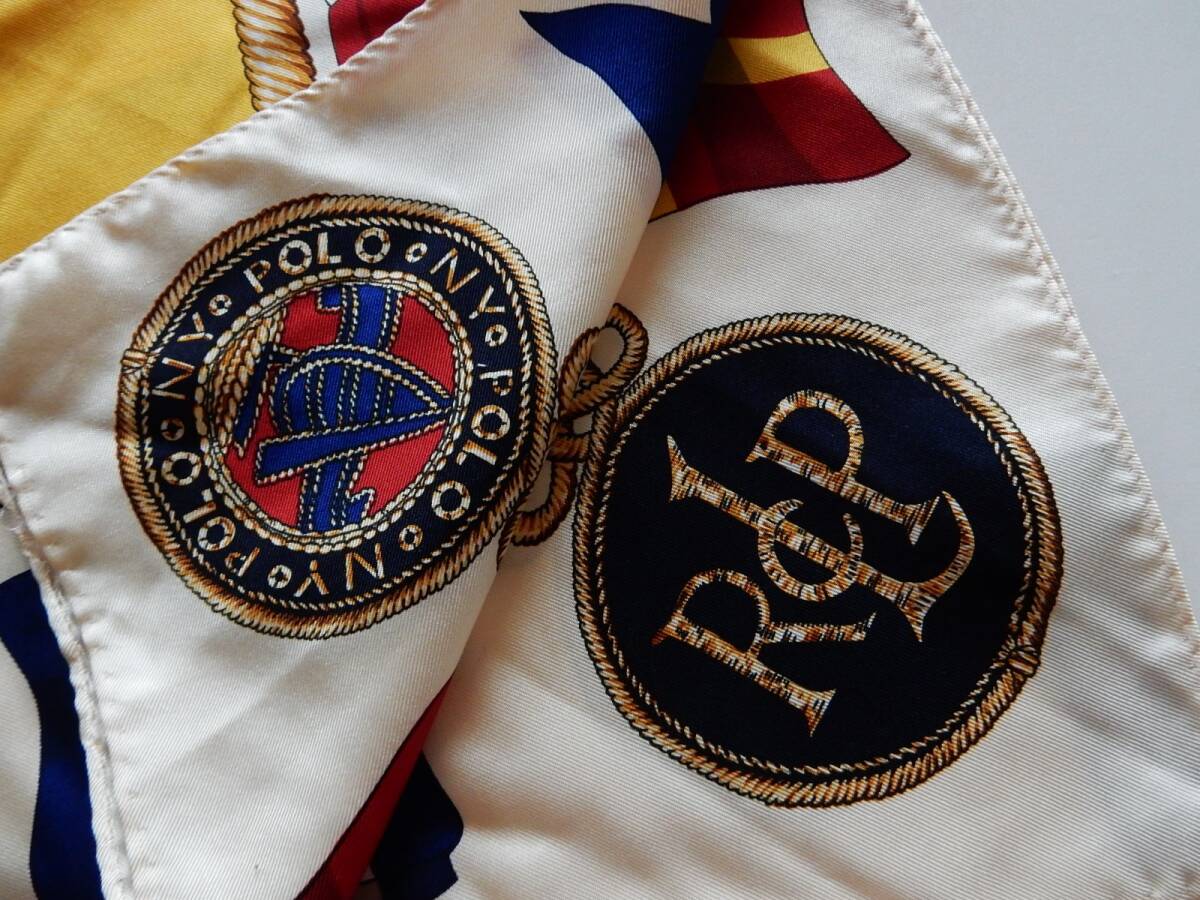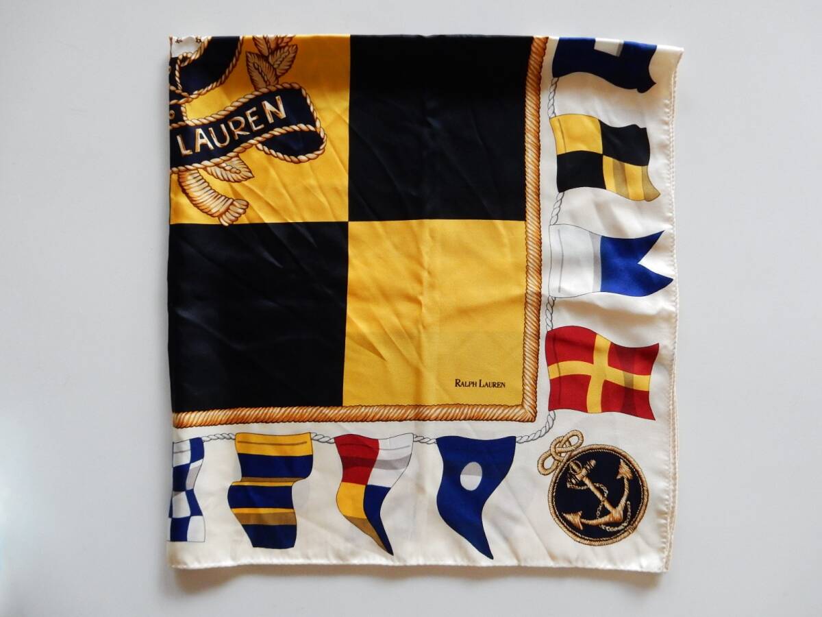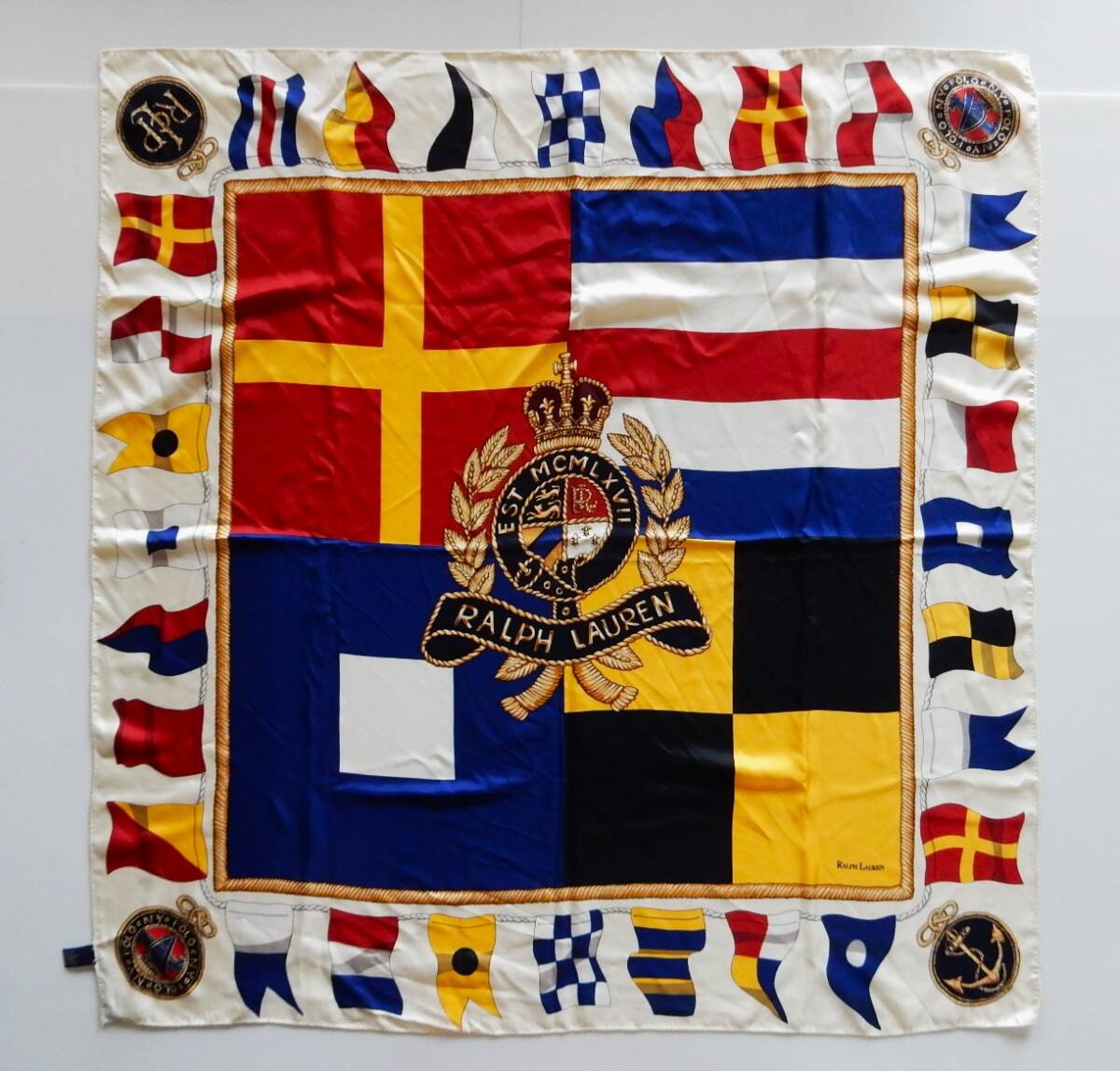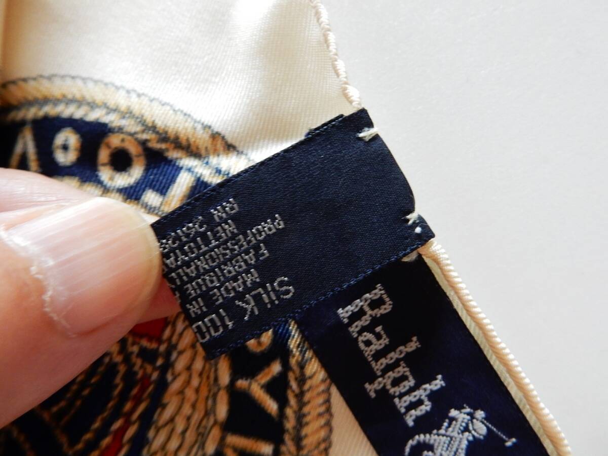 ご覧頂きありがとう御座います♪ ★('-^v)Thanks(v^-')★ 【 ご入札をされる前に必ずお読み下さい! 】 * キャンセル歴、悪い評価が多い方は申し訳ございませんが入札をお控え下さい。 * 最後までご覧いただき全てにおいてご承諾いただける方のみご入札お願い致します。 * いたずらのご入札はお止め下さいませ! ■ ブランド名 → ラルフローレン / RALPH LAUREN ■ シルク100%の素敵なスカーフとなります。 ■ 中古になりますが、まだまだお使い頂けます。 ■ 畳シワ御座います。 ■ 今では見かけない希少なお品かと思います。 ■ 大きさ 約87㎝ 正方形 ■ お安く売切りスタートしますのでノークレームノーリターンでお願い致します(o^-’)b | |||
