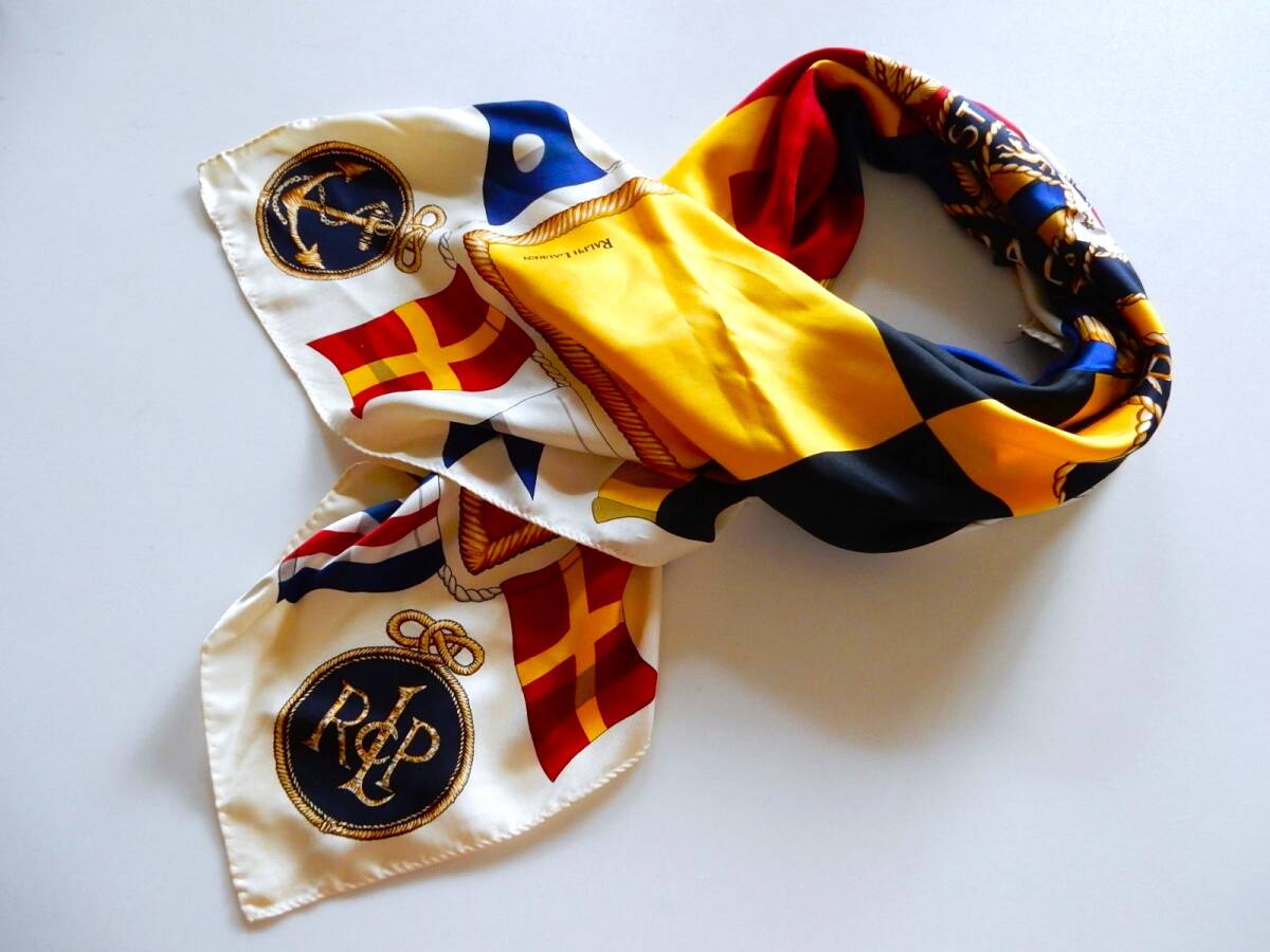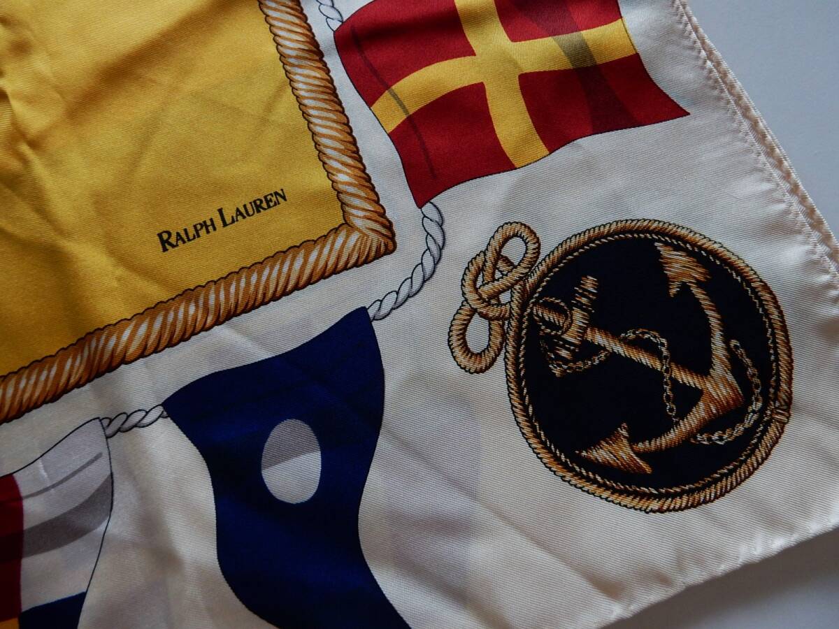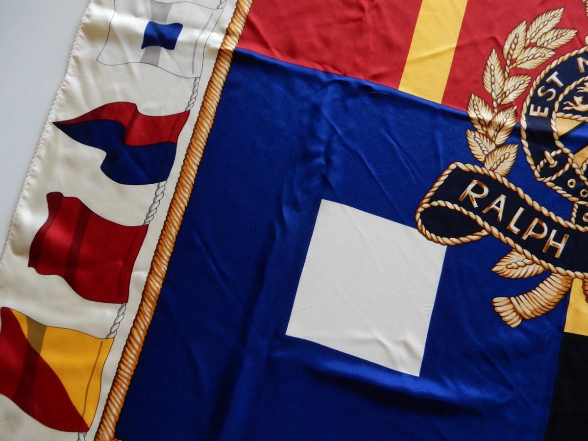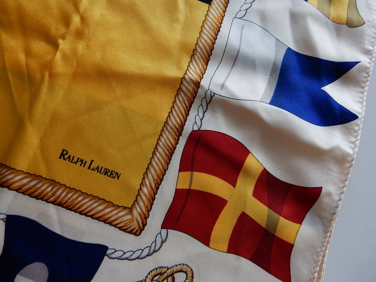 ご覧頂きありがとう御座います♪ ★('-^v)Thanks(v^-')★ 【 ご入札をされる前に必ずお読み下さい! 】 * キャンセル歴、悪い評価が多い方は申し訳ございませんが入札をお控え下さい。 * 最後までご覧いただき全てにおいてご承諾いただける方のみご入札お願い致します。 * いたずらのご入札はお止め下さいませ! ■ ブランド名 → ラルフローレン / RALPH LAUREN ■ シルク100%の素敵なスカーフとなります。 ■ 中古になりますが、まだまだお使い頂けます。 ■ 畳シワ御座います。 ■ 今では見かけない希少なお品かと思います。 ■ 大きさ 約87㎝ 正方形 ■ お安く売切りスタートしますのでノークレームノーリターンでお願い致します(o^-’)b | |||