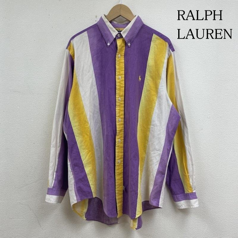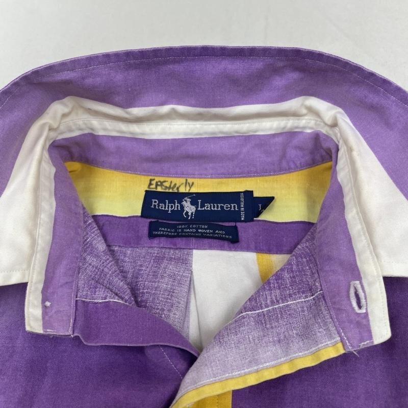 ラルフローレン 90s 長袖 ボタンダウン シャツ ブラウス ロングスリーブ マルチカラー ストライプ ポニーロゴ 刺繍 ワンポイント L