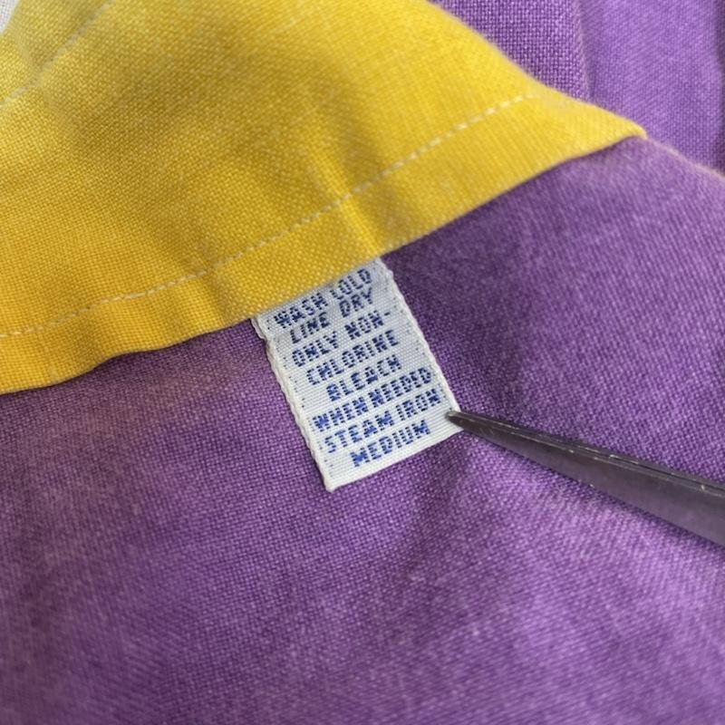 首周り、全体に汚れ。首後ろに文字入り。前身頃に小さなほつれ穴