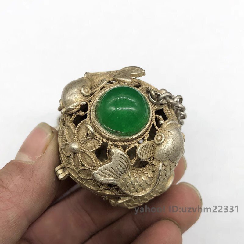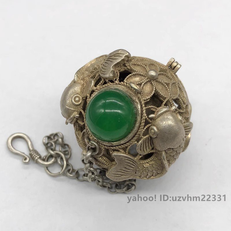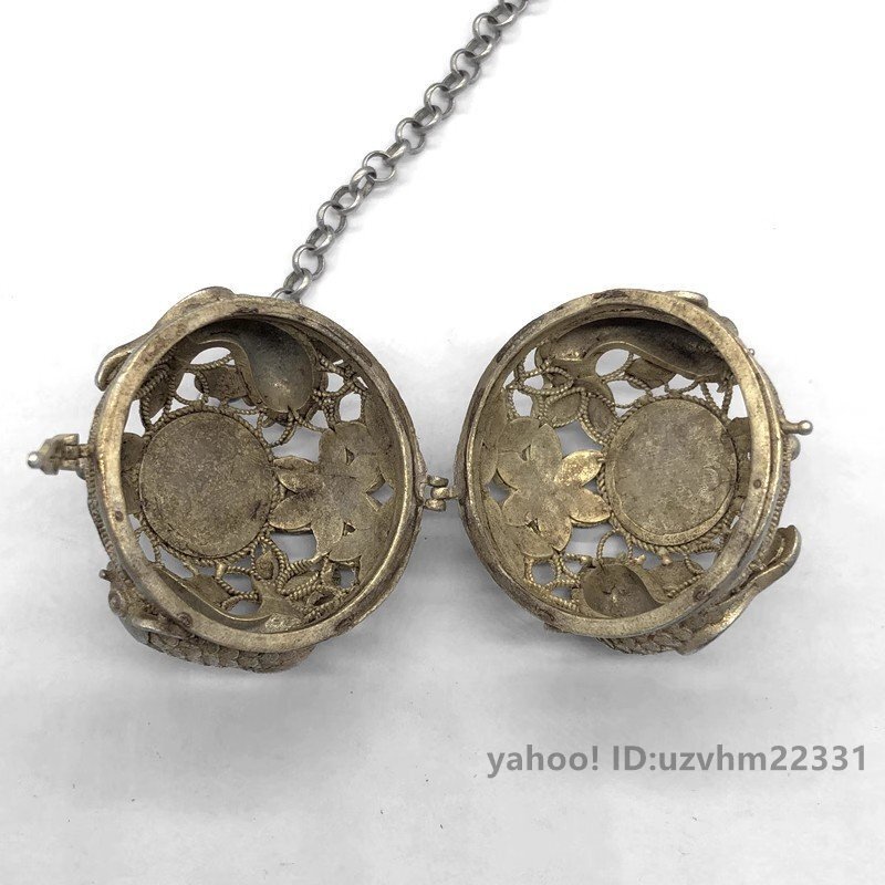 珍品 旧蔵 透かし彫り 金属鎖 双魚 香道具 裝身具 ストラップ ペンダント 装飾 収蔵品 鑑賞 中国美術品