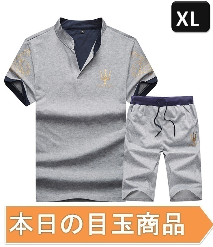 ☆今日の目玉商品☆ジャージ 上下 セット 半袖 部屋着 ルームウェア スポーツウェア セットアップ グレー XLサイズ 【241】