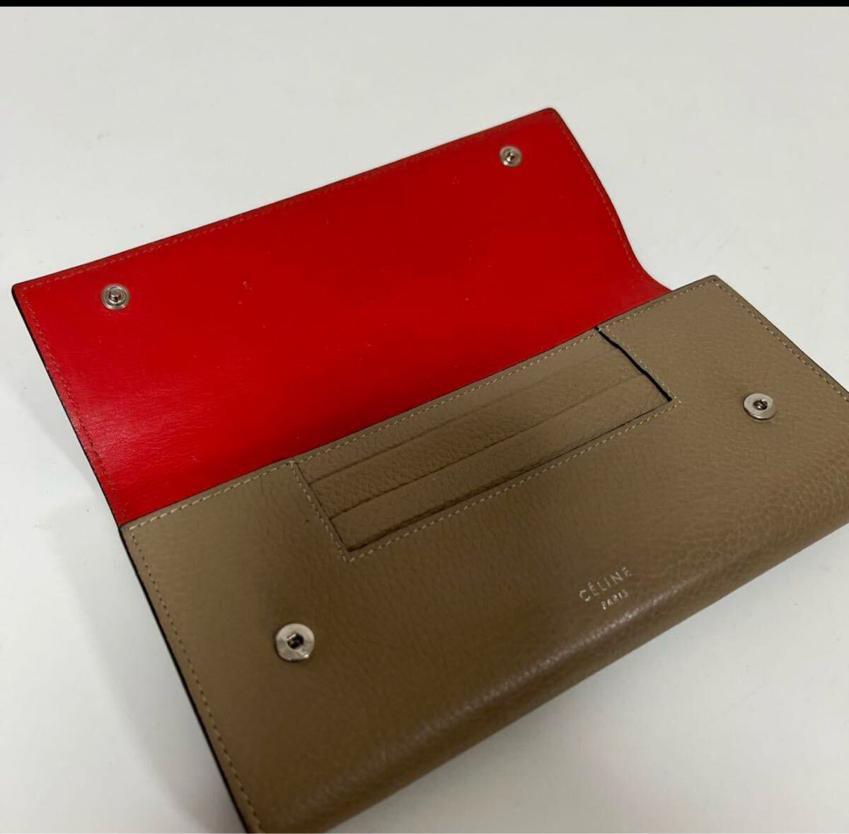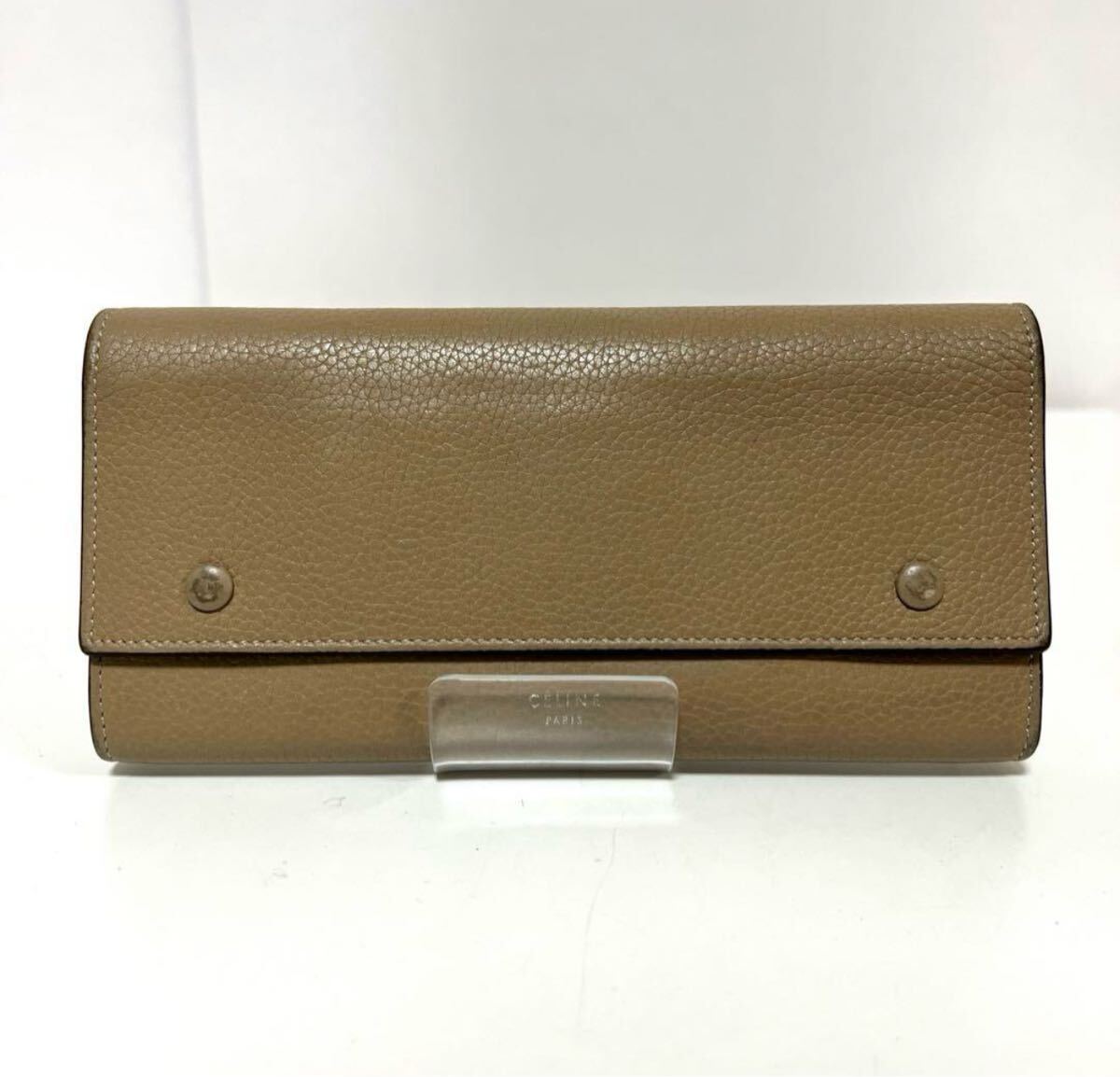 CELINE セリーヌ 二つ折り 長財布 ラージフラップ マルチファンクション ベージュ 中古
