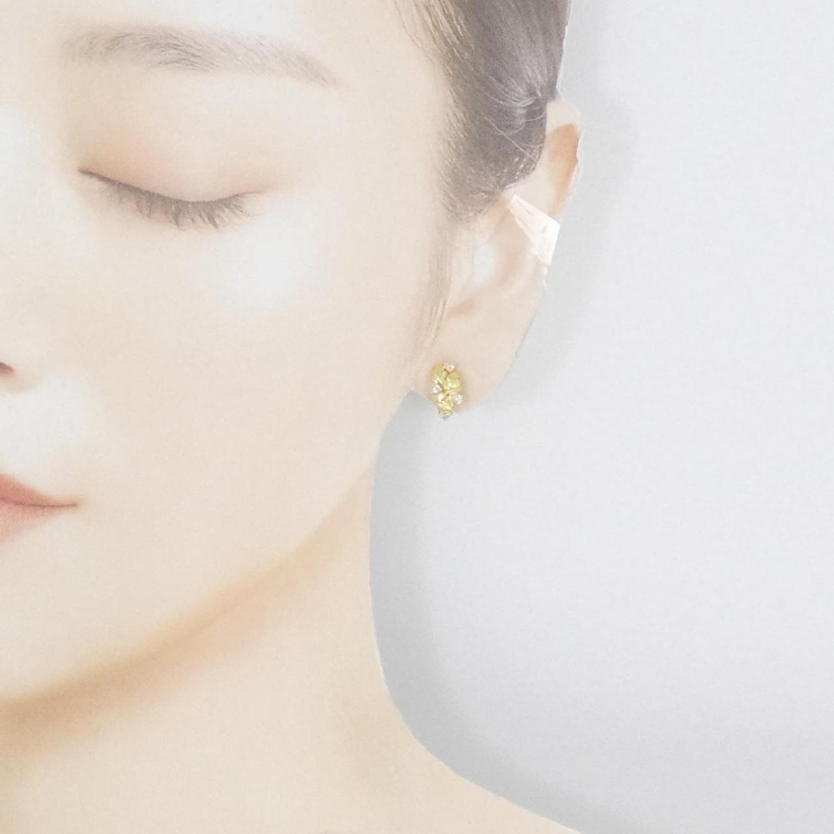 キラリと輝くダイヤモンドをセッティング。ボタニカルなデザインがオシャレなピアスです。