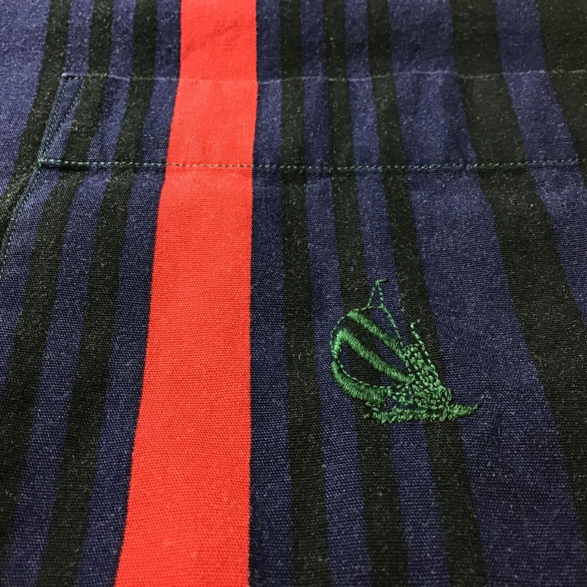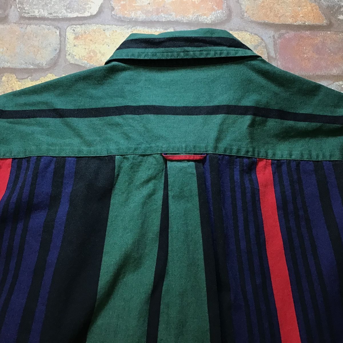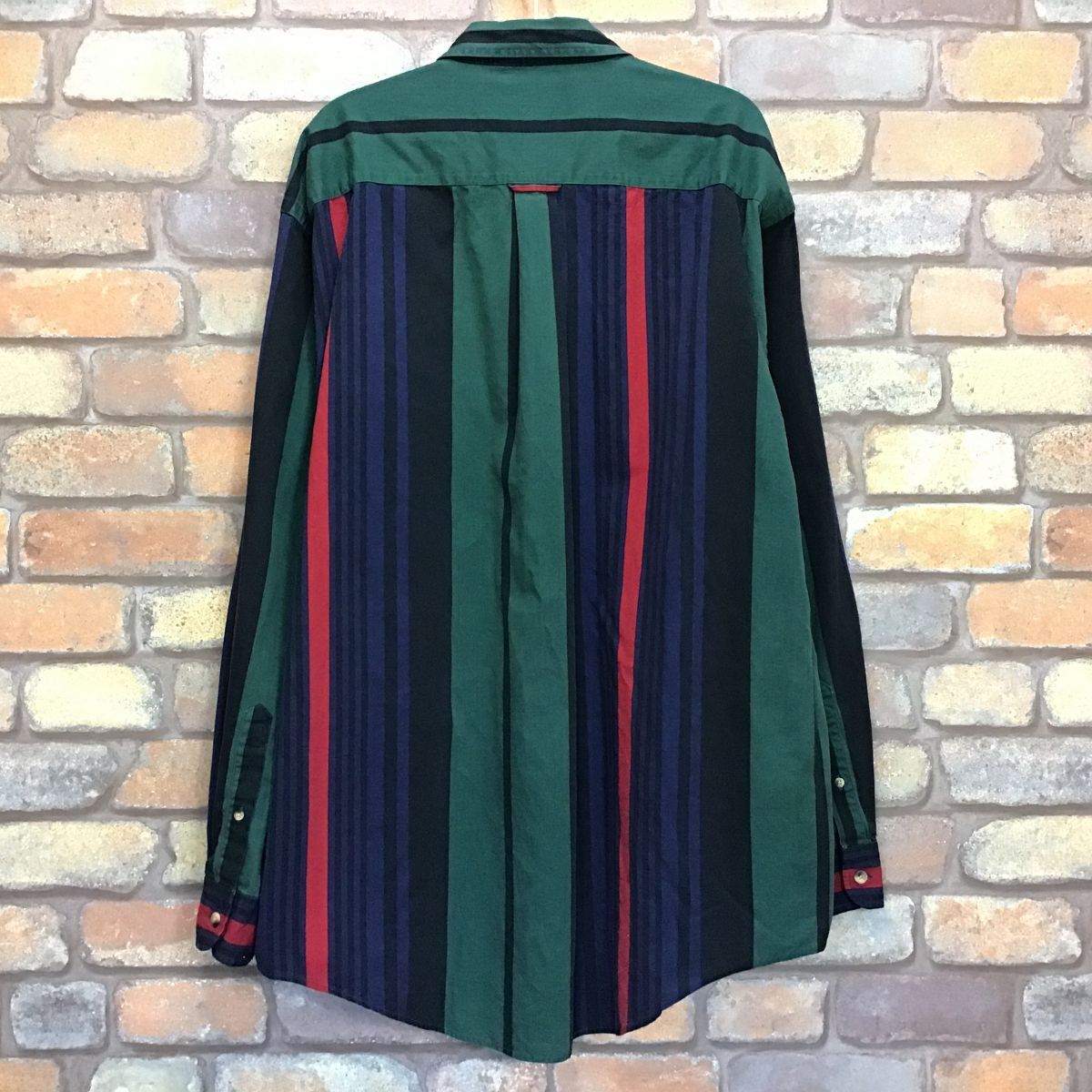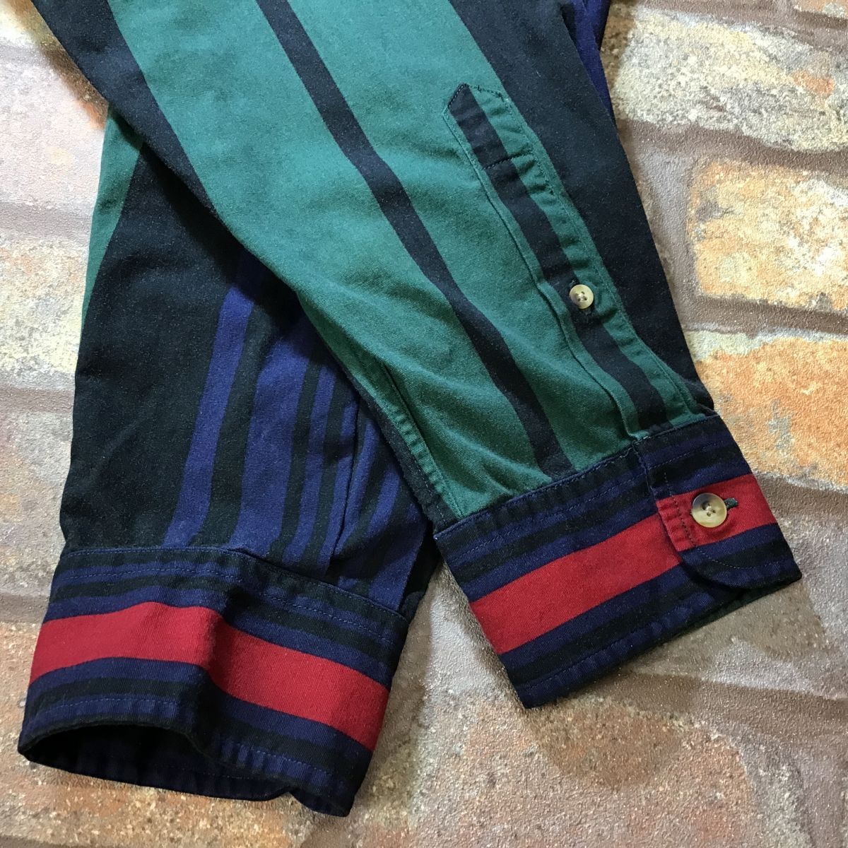 ★レア★BIGサイズ★90’s vintage★【nautica ノーティカ】刺繍 旧ロゴ マルチストライプ BDシャツ[海外 XL]黒 緑 赤 紺 ゆるダボ K3-124