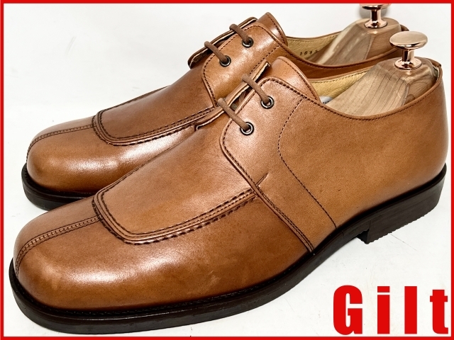 即決★美品展示品 日本製 HANTS&hants★26cm レザーUチップシューズ ハンツアンドハンツ 茶 キャメル ドレス クラシック 本革 革靴