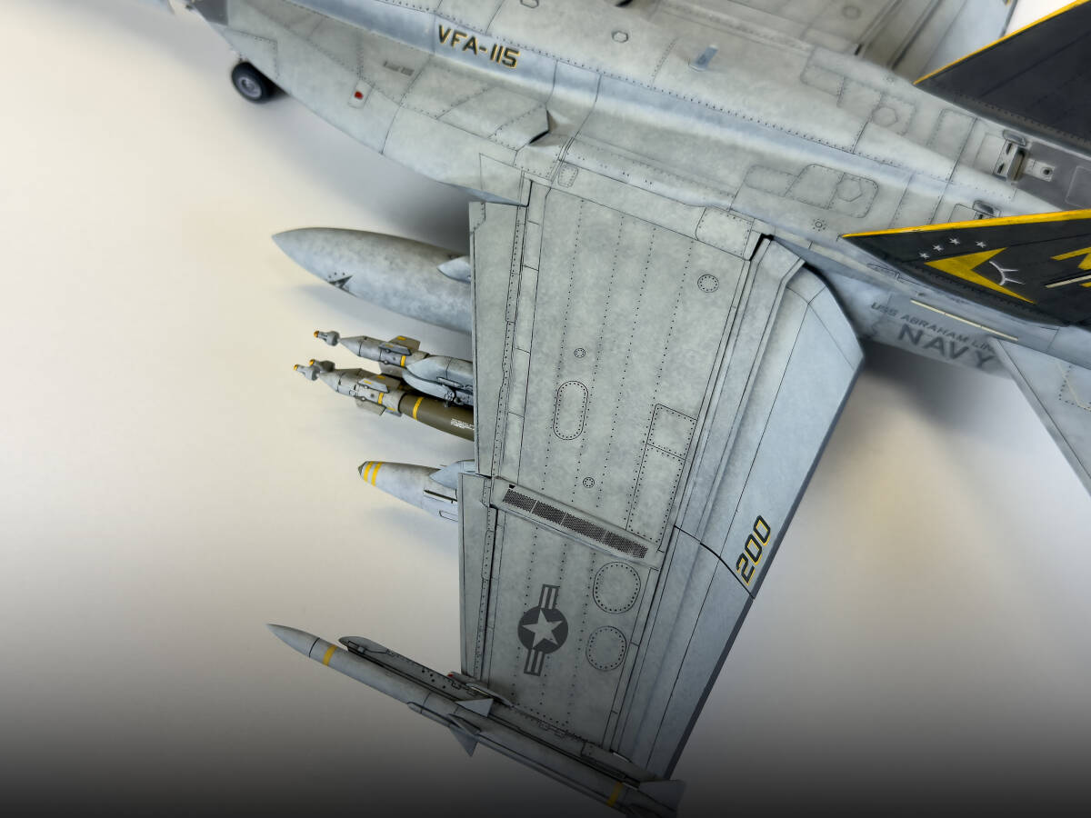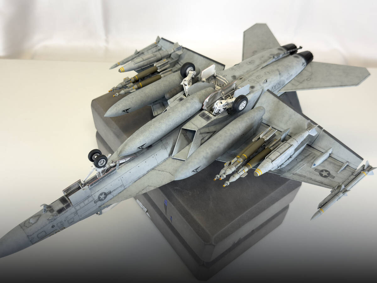 この度は当オークションを御覧いただき、ありがとうございます 本商品は、 【ハセガワ】1/48 F/A-18E スーパーホーネット を、各部改修工作したキットです ■作業内容 ◯ 主翼のエルロン・フラップはダウン状態で固定化しています ◯ 基本工作(バリ取り・合わせ目処理・ヒケ処理) ◯ 黒サフをベース塗装後に機体各部をパネルライン毎にグラデーション塗装 ◯ エナメル塗料でウォッシング処理後に、オイル汚れや塗膜劣化部分等を油彩等各種マテリアルにてリアルウォッシング ◯ ツヤ消しクリアにてオーバーコート ◯ 首脚・主脚格納庫はAIRES製のレジンパーツに換装しています ■サイズ(参考程度) ◯ 1/48スケール ◯ 全長:390mm ◯ 全幅:290mm ◯ 全高:100mm ※ 撮影時に脚部下に噛ましているプラ製透明ケースを同梱します ※ 商品の元箱・取扱い説明書は含まれません |