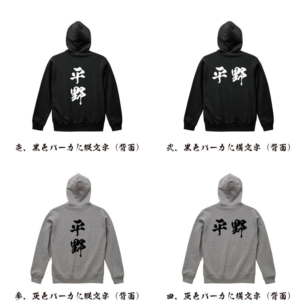 平野 オリジナル パーカ 書道家が書く プリント フルジップ パーカー S M L XL XXL 110 130 150 【 名字 】