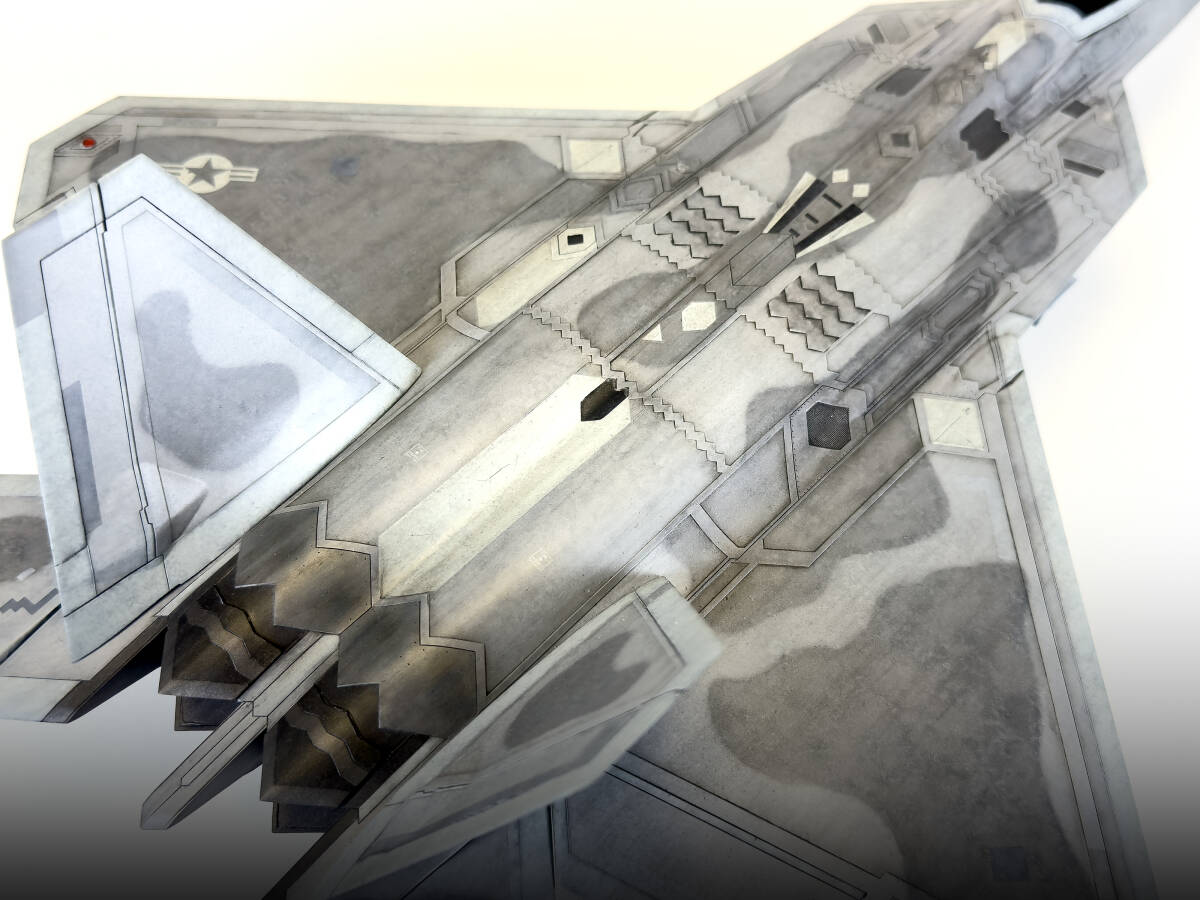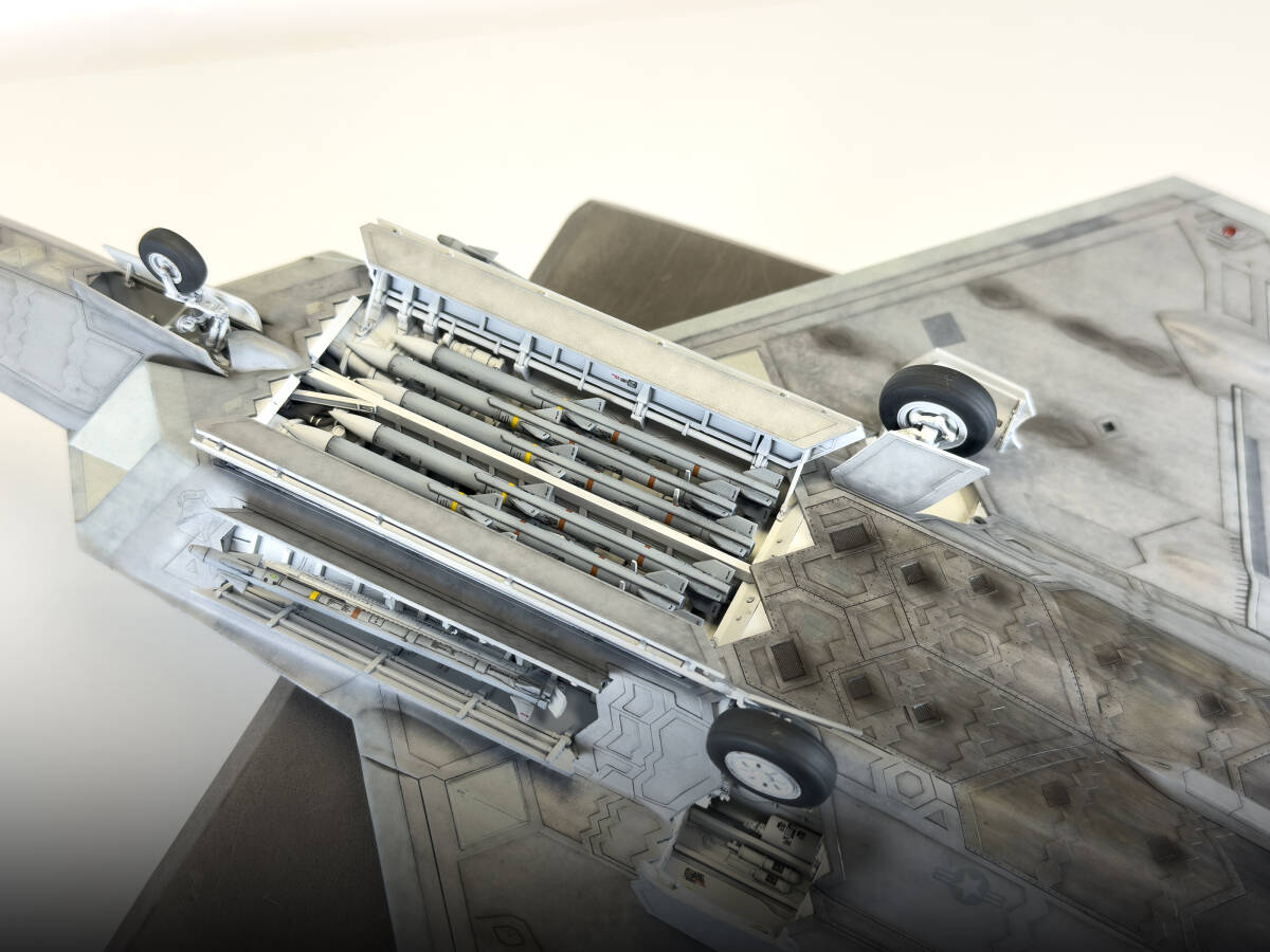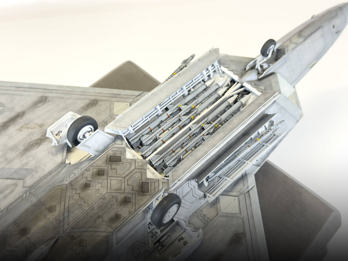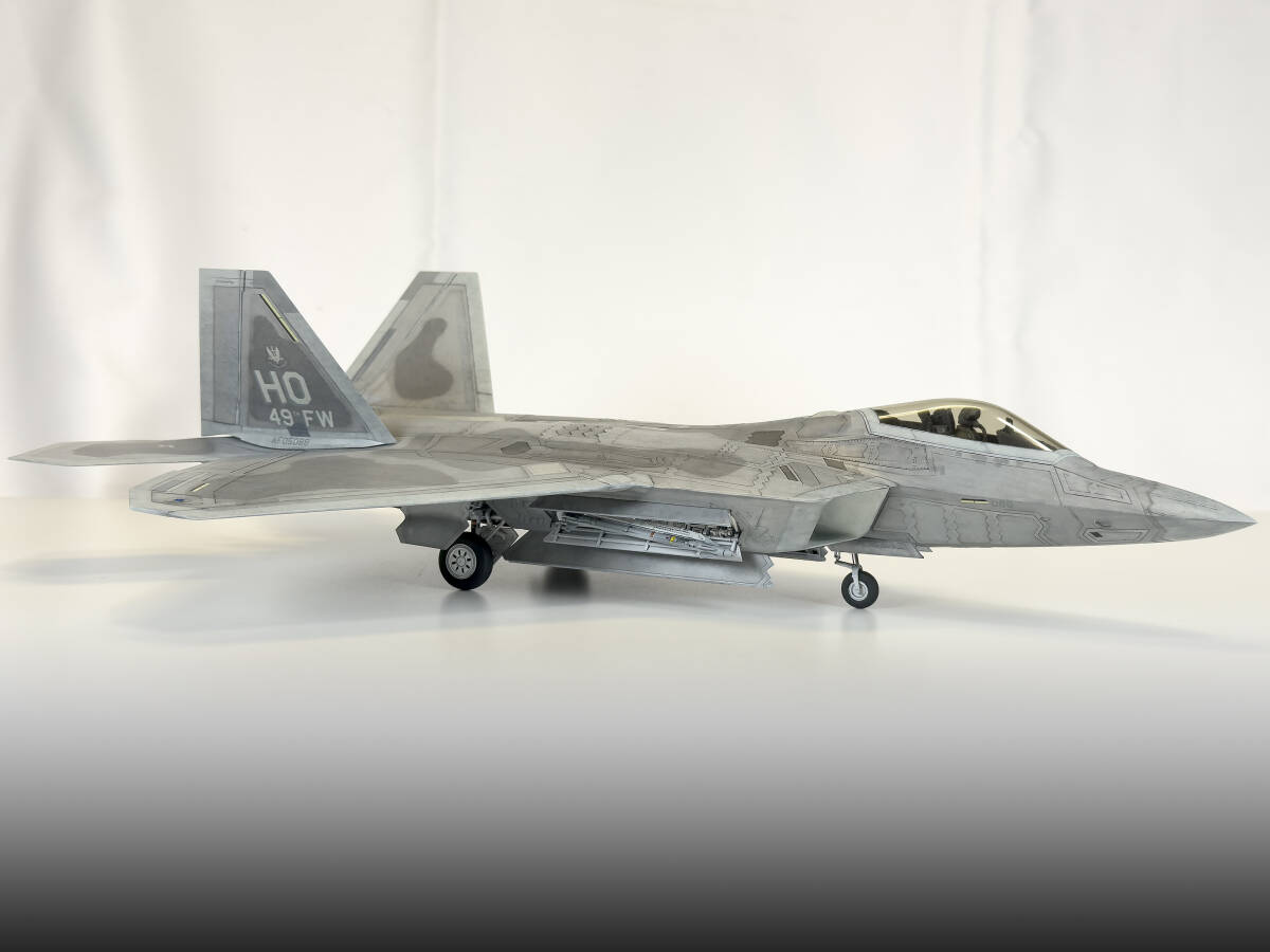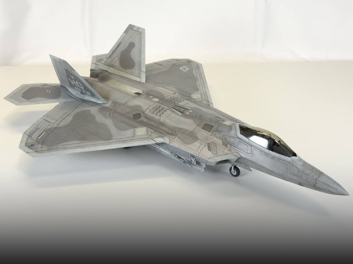 この度は当オークションを御覧いただき、ありがとうございます 本商品は、 【ハセガワ】1/48 F-22 ラプター を、各部改修工作したキットです 画像検索すると、実機はかなりステルス塗装が劣化・リペアしてあったので、質感を再現しています ■作業内容 ◯ 基本工作(バリ取り・合わせ目処理・ヒケ処理) ◯ 黒サフをベース塗装後に機体各部をパネルライン毎にグラデーション塗装 ◯ エナメル塗料でウォッシング処理後に、オイル汚れや塗膜劣化部分等を油彩等各種マテリアルにてリアルウォッシング ◯ ツヤ消しクリアにてオーバーコート ■サイズ(参考程度) ◯ 1/48スケール ◯ 全長:405mm ◯ 全幅:285mm ◯ 全高:100mm ※ 撮影時に脚部下に噛ましているプラ製透明ケースを同梱します ※ 商品の元箱・取扱い説明書は含まれません |