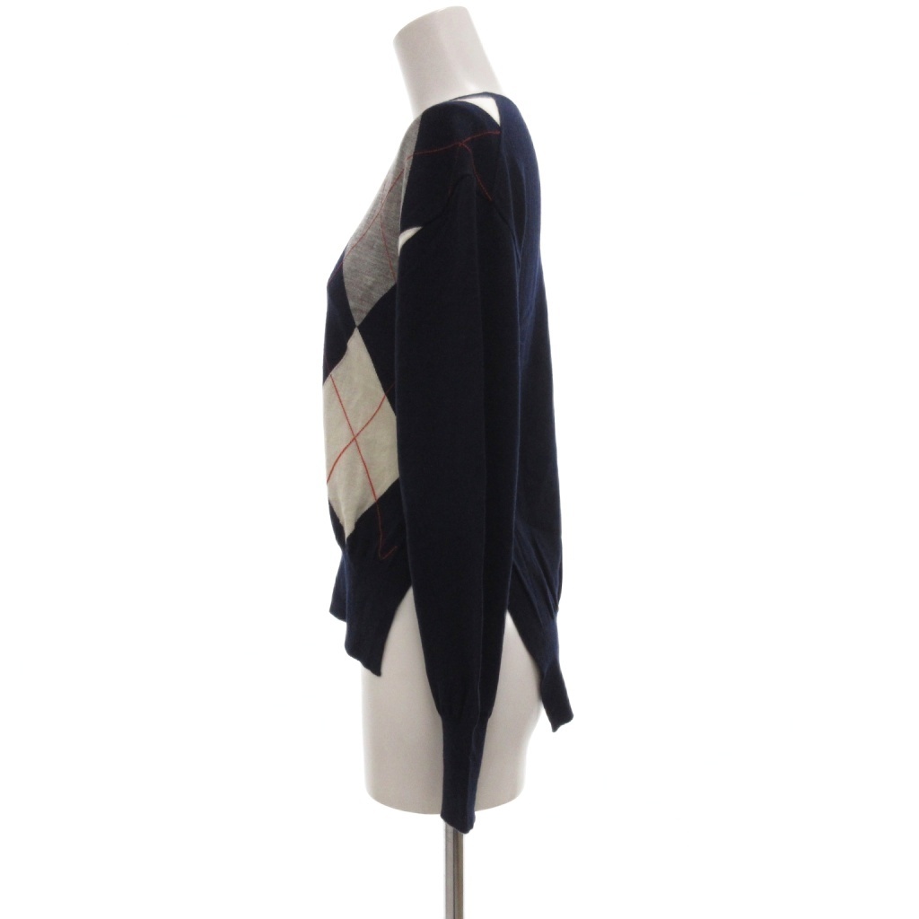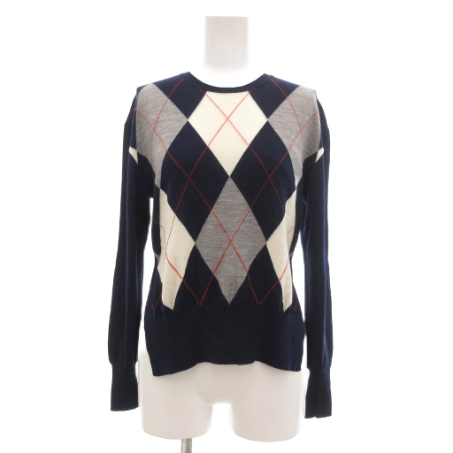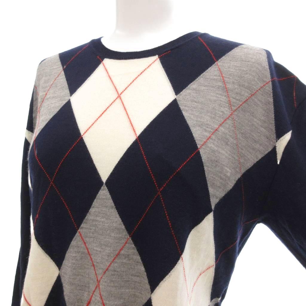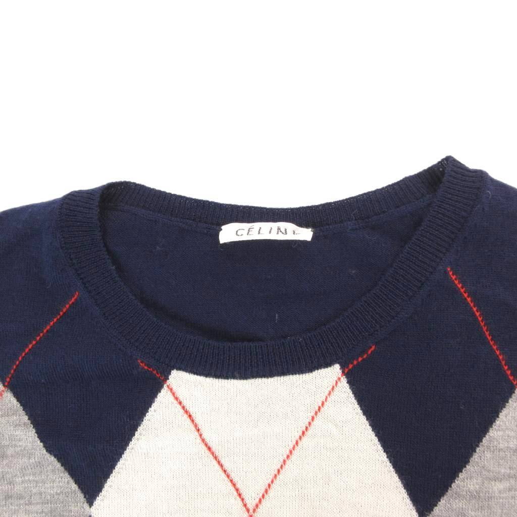 セリーヌ CELINE オールドセリーヌ ヴィンテージ 美品 ニット セーター ウール アーガイル チェック XS 紺 ネイビー レディース