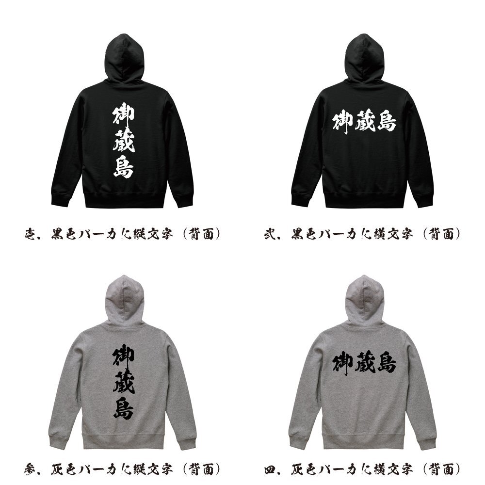 御蔵島 書道家が書く デザイン フルジップ パーカ 【 東京 】 メンズ レディース キッズ