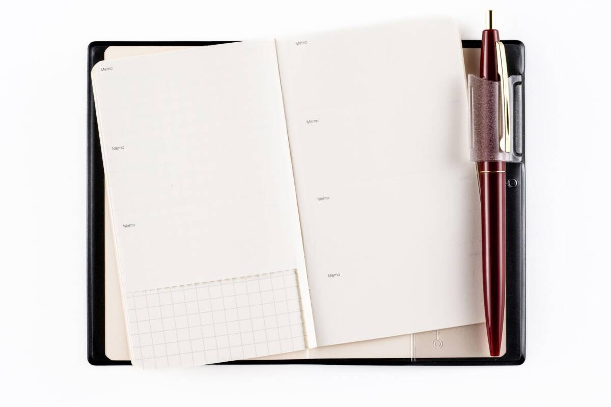 スーツの内ポケットに入ってもかさばらない、高橋書店の手帳の中で最小サイズ。