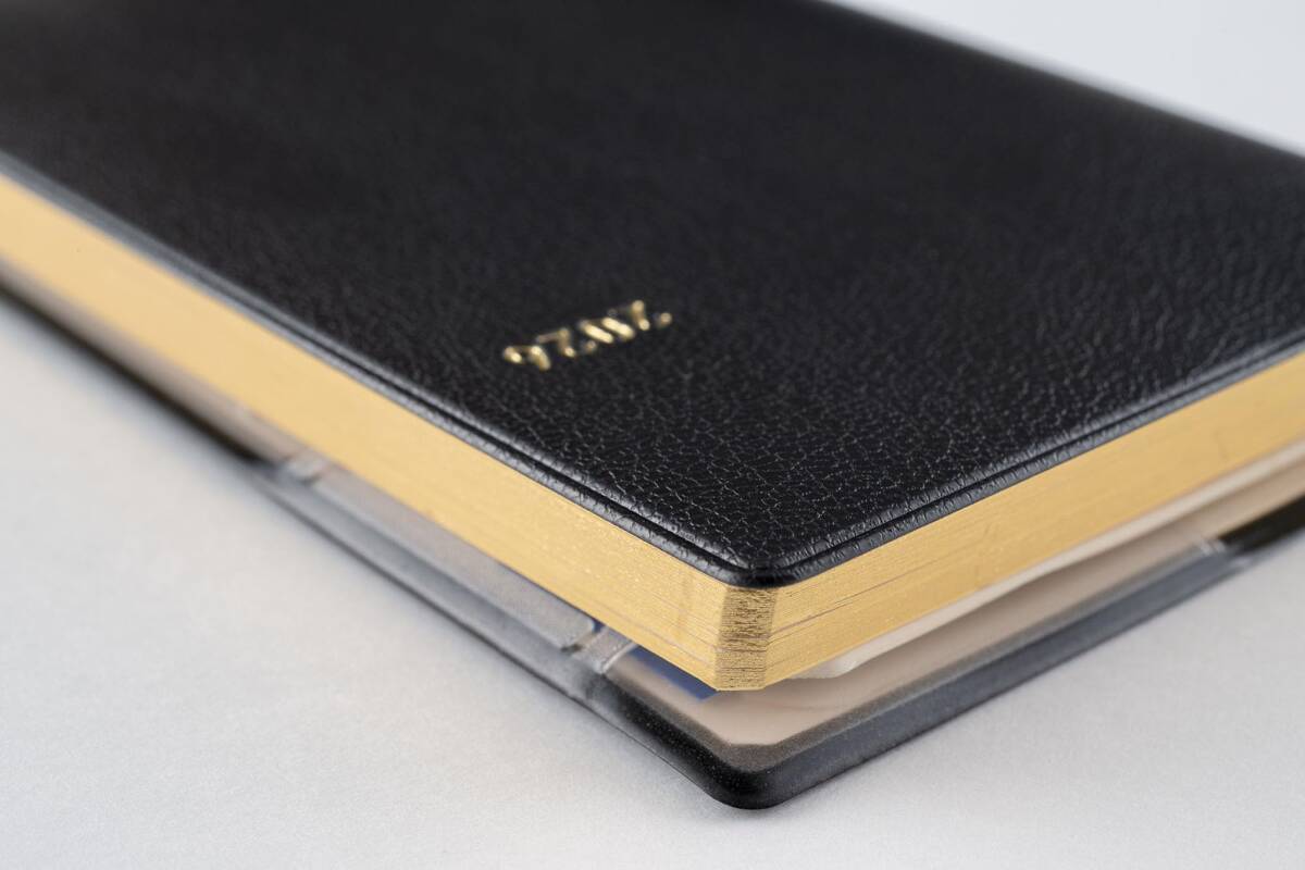 【毎日使い続けられる丈夫な製本】洗練された加工技術を使って美しい仕上がりを追及。見た目では分からないほどの多くの工程による丁寧な加工によって耐久性を高めながら、手帳本体にぴったりとフィットするクオリティを追及しています。しおりひもは一本一本丁寧に特別に作られた、ほつれにくく耐久性の高いしおりひもを使用しています。
