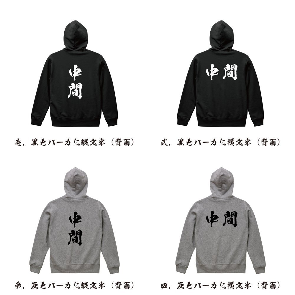 中間 オリジナル パーカ 書道家が書く プリント フルジップ パーカー S M L XL XXL 110 130 150 【 名字 】