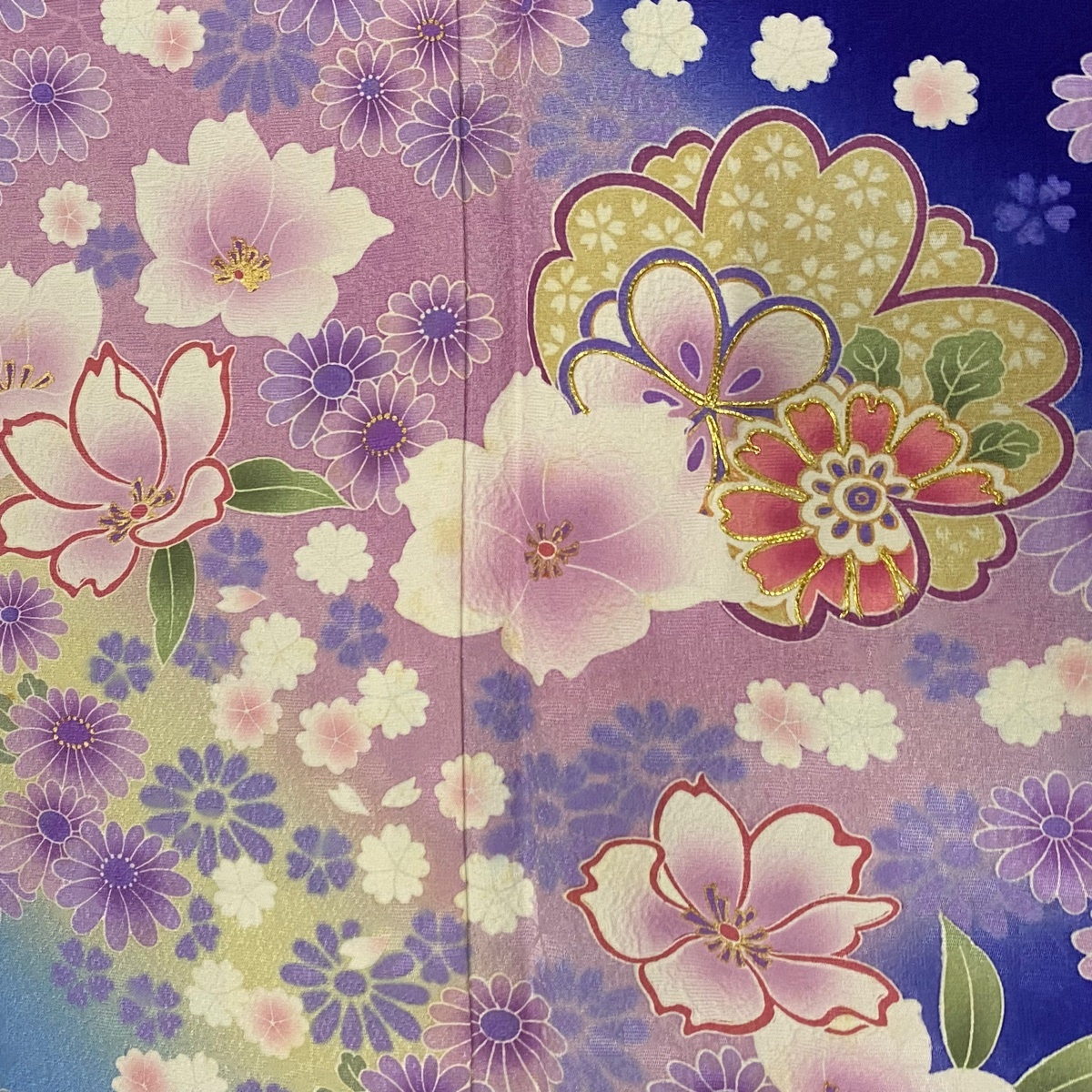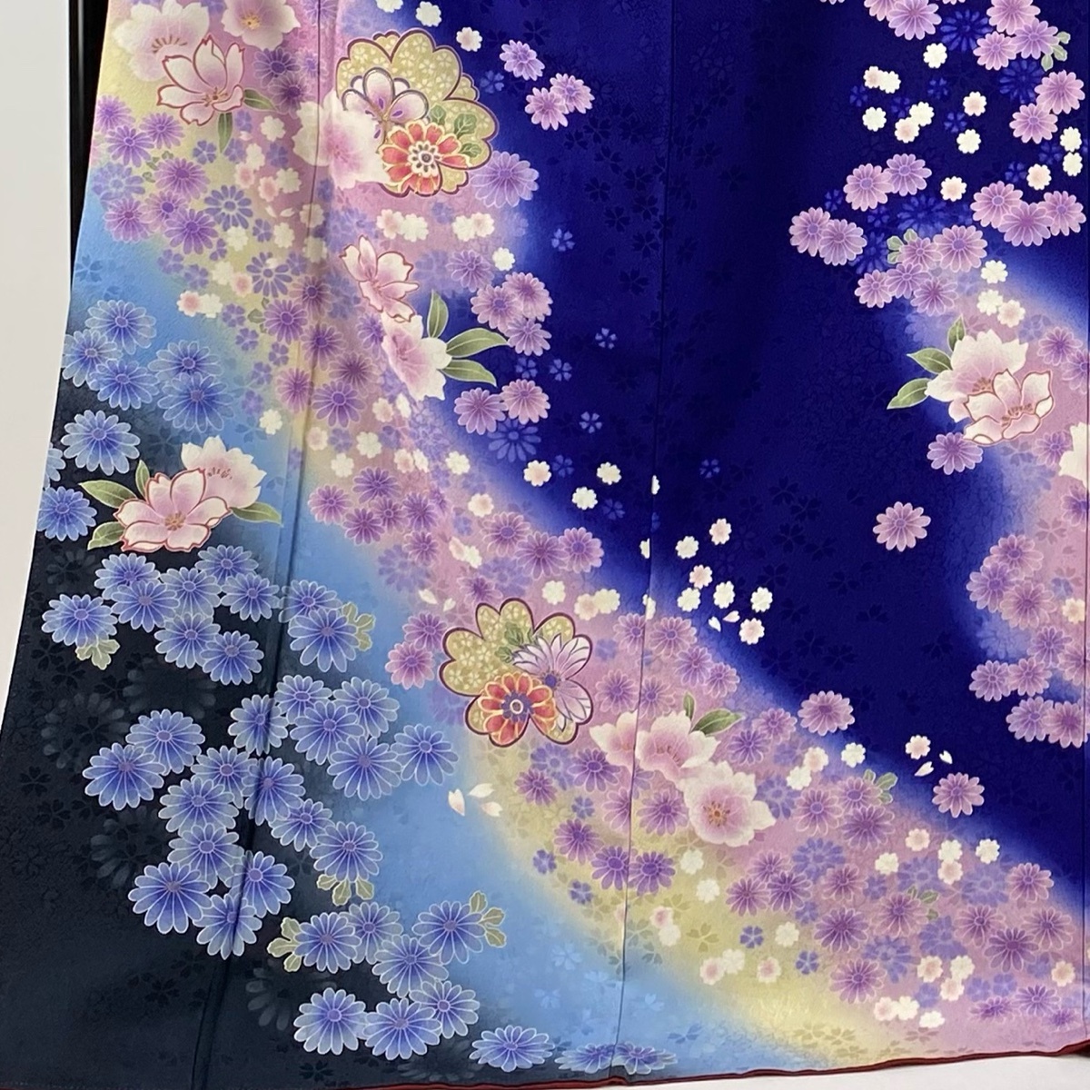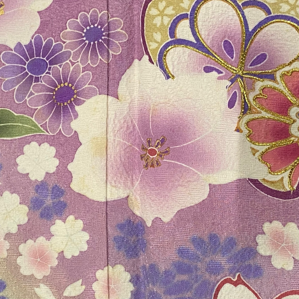 | 振袖 名品 草花 菊 金糸 金彩 青紫 袷 身丈173.5 裄丈67.5 L 正絹 【中古】 |