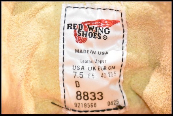 【7.5D 美品 25年】レッドウィング 8833 スエード アイリッシュセッター ホーソーン ラフアウト モック ブーツ redwing HOPESMORE