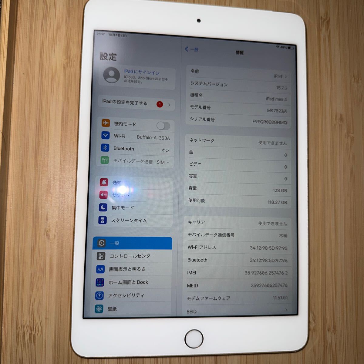 1002-1 IO-3 iPad mini 4 Wi-Fi + Cellular 国内版SIMフリー 128GB ゴールド MK782J/A 動作確認済