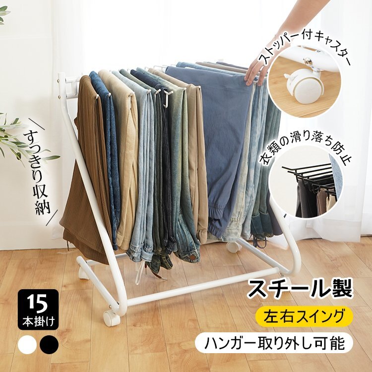 送料無料 スラックスハンガー パンツラック 15本掛け ズボンハンガー キャスター 衣類収納 タオルハンガー スイング式 物干し sg250-15