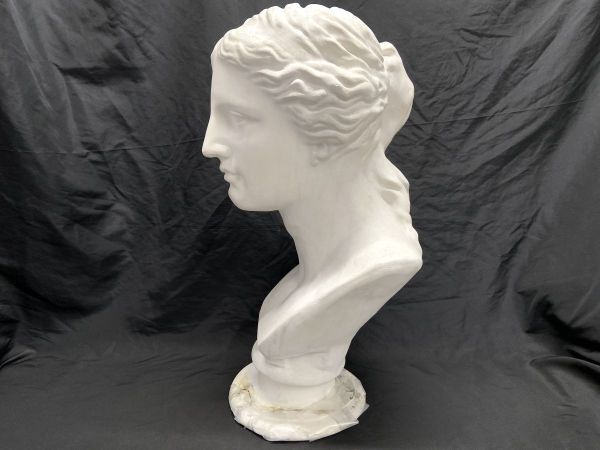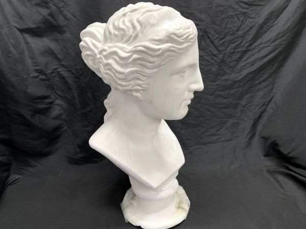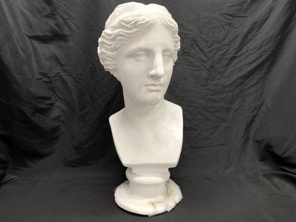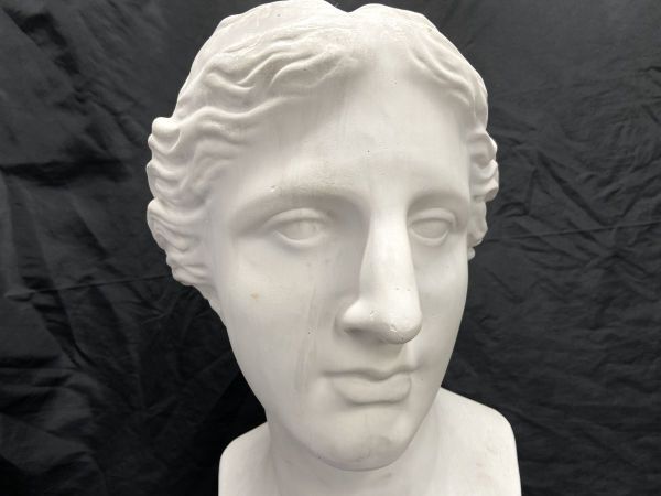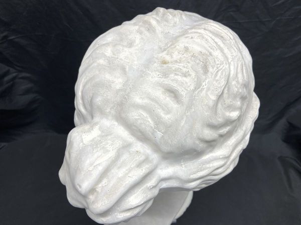 【R326】石膏像/石像 首像 顔 頭部 全長61cm デッサン像 美術 下部に割れあり インテリア オブジェ b | ||
