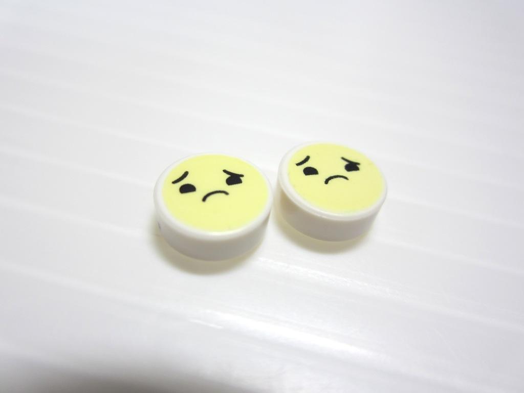 本品はかわいい丸い1×1プリントタイル2点(困り顔)です。