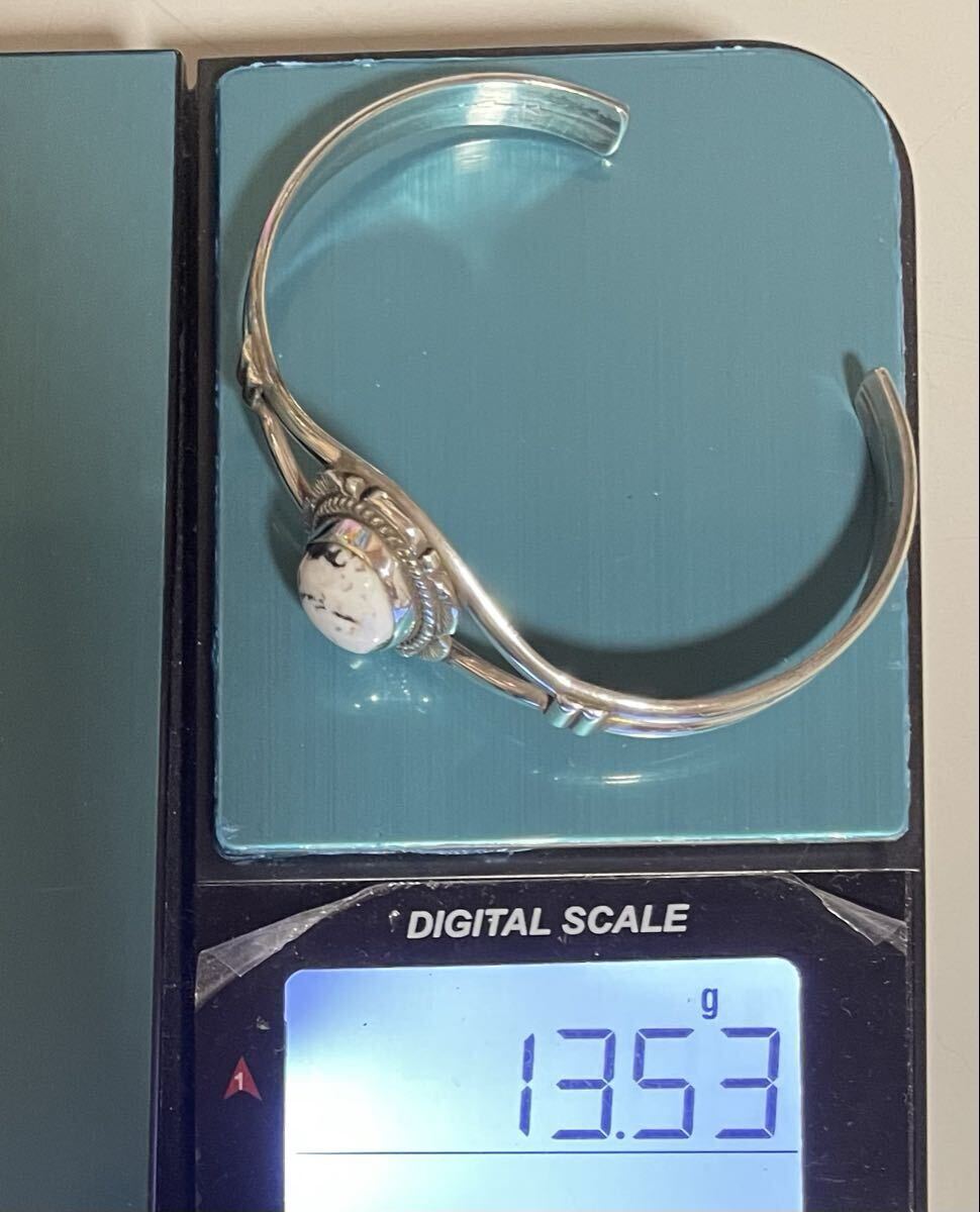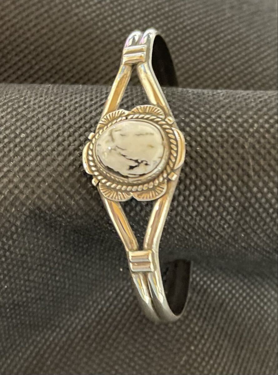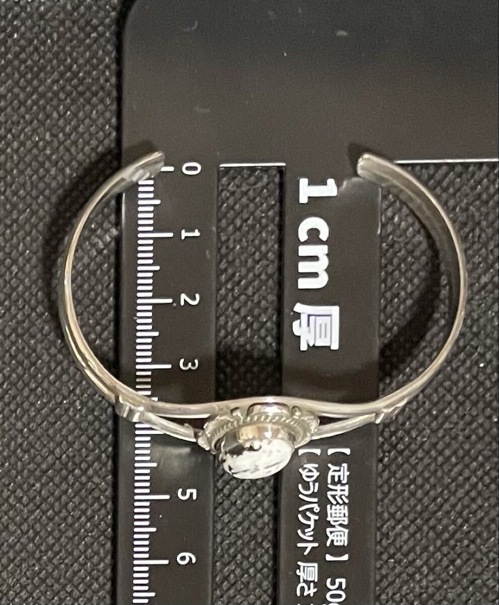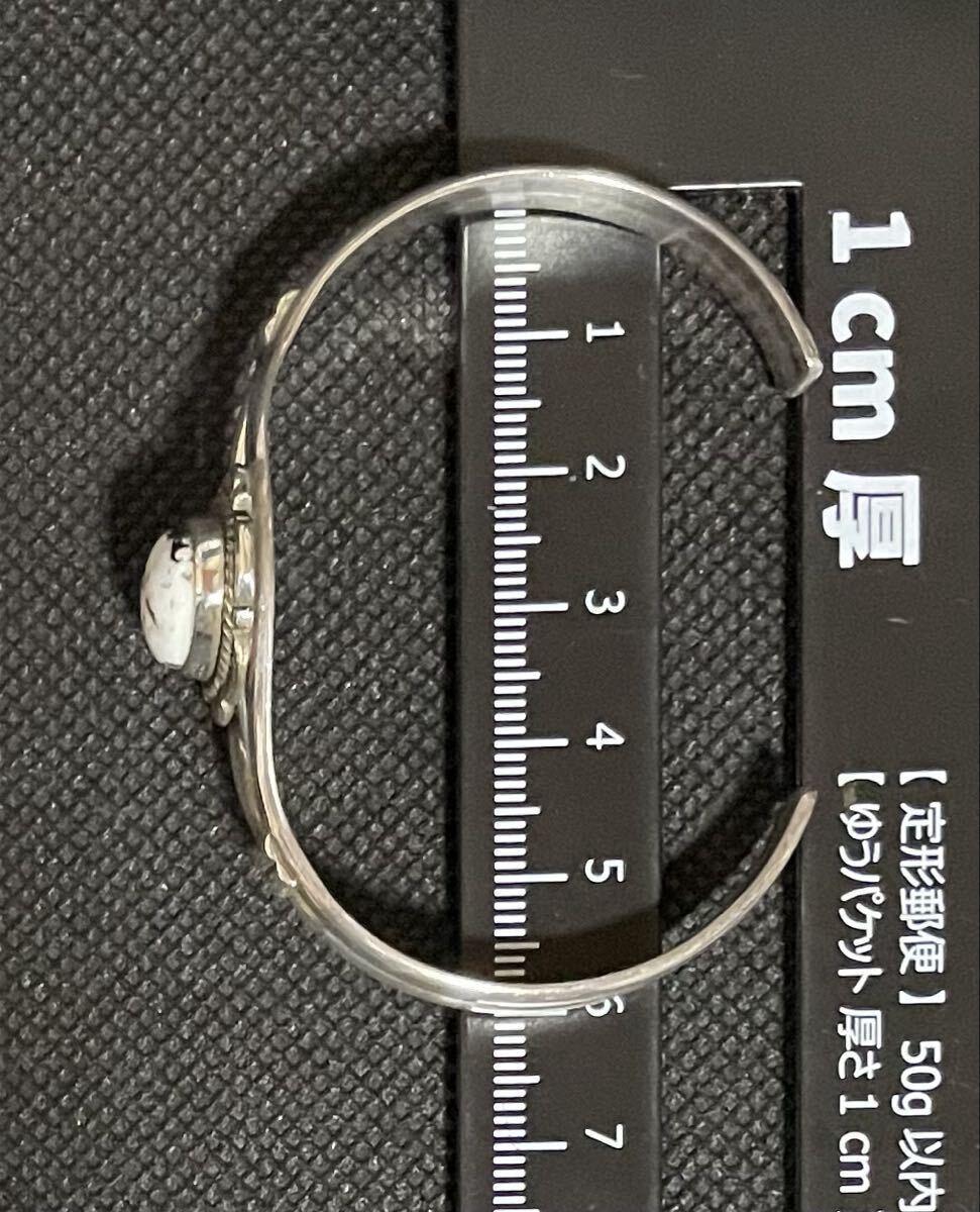 インディアンジュエリーで有名なナバホ族のホワイトターコイズのシルバーバングルになります。
