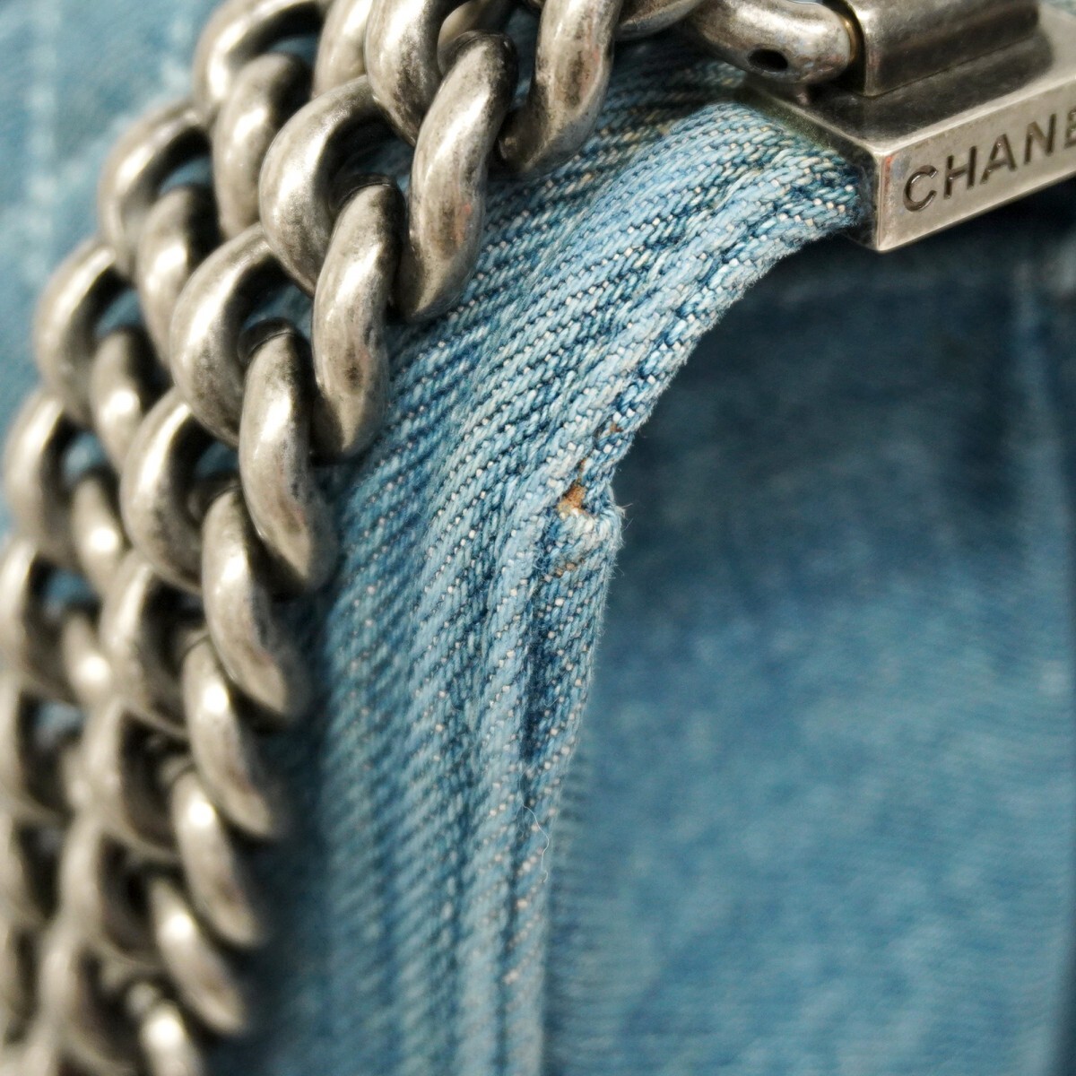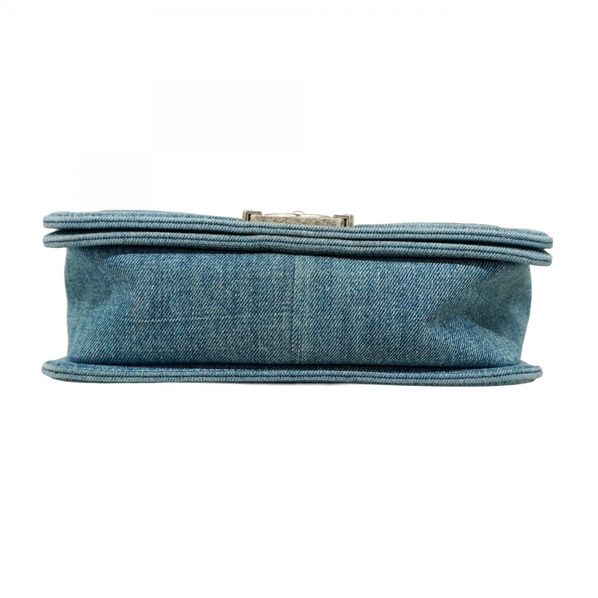 【5ie6305-h】シャネル ショルダーバッグ ボーイシャネル チェーンショルダー デニム ブルー シルバー金具【中古】レディース