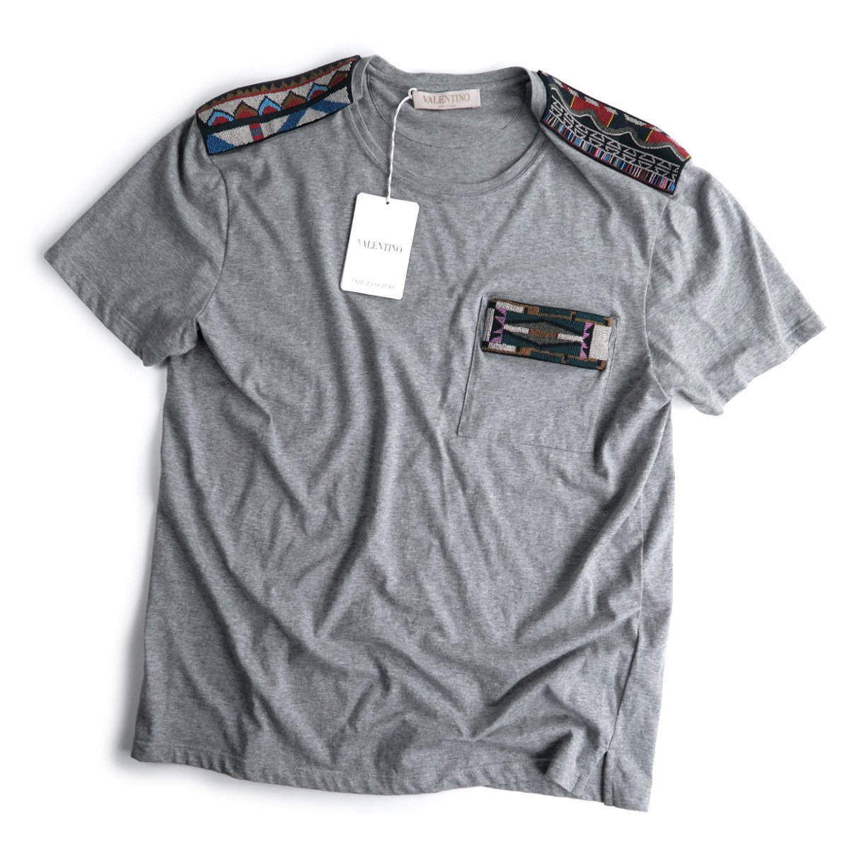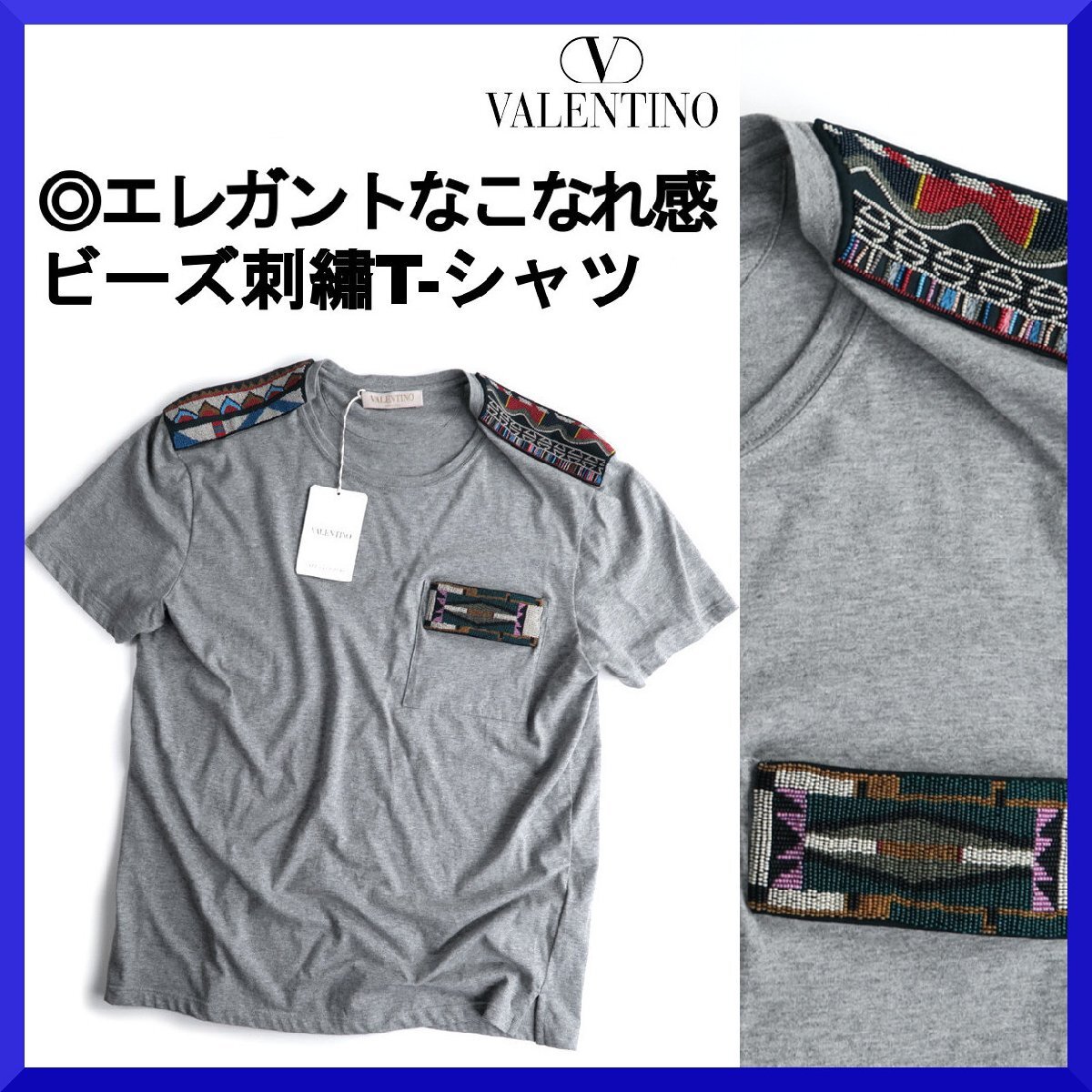価格14万新品本物ヴァレンティノVALENTINO伊製【エレガントなこなれ感】注目度◎ビーズ刺繍!!T-シャツ/半袖/メンズ/春夏/M