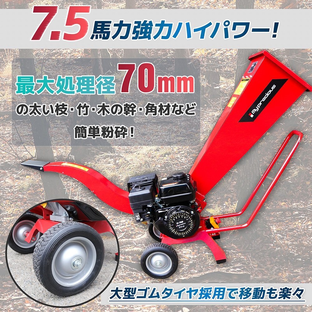 【チャーター便】エンジン粉砕機 ウッドチッパー 7.5馬力+2枚替刃セット★最大処理径70mm 竹&樹木の粉砕に 日本語説明書 使用方法動画