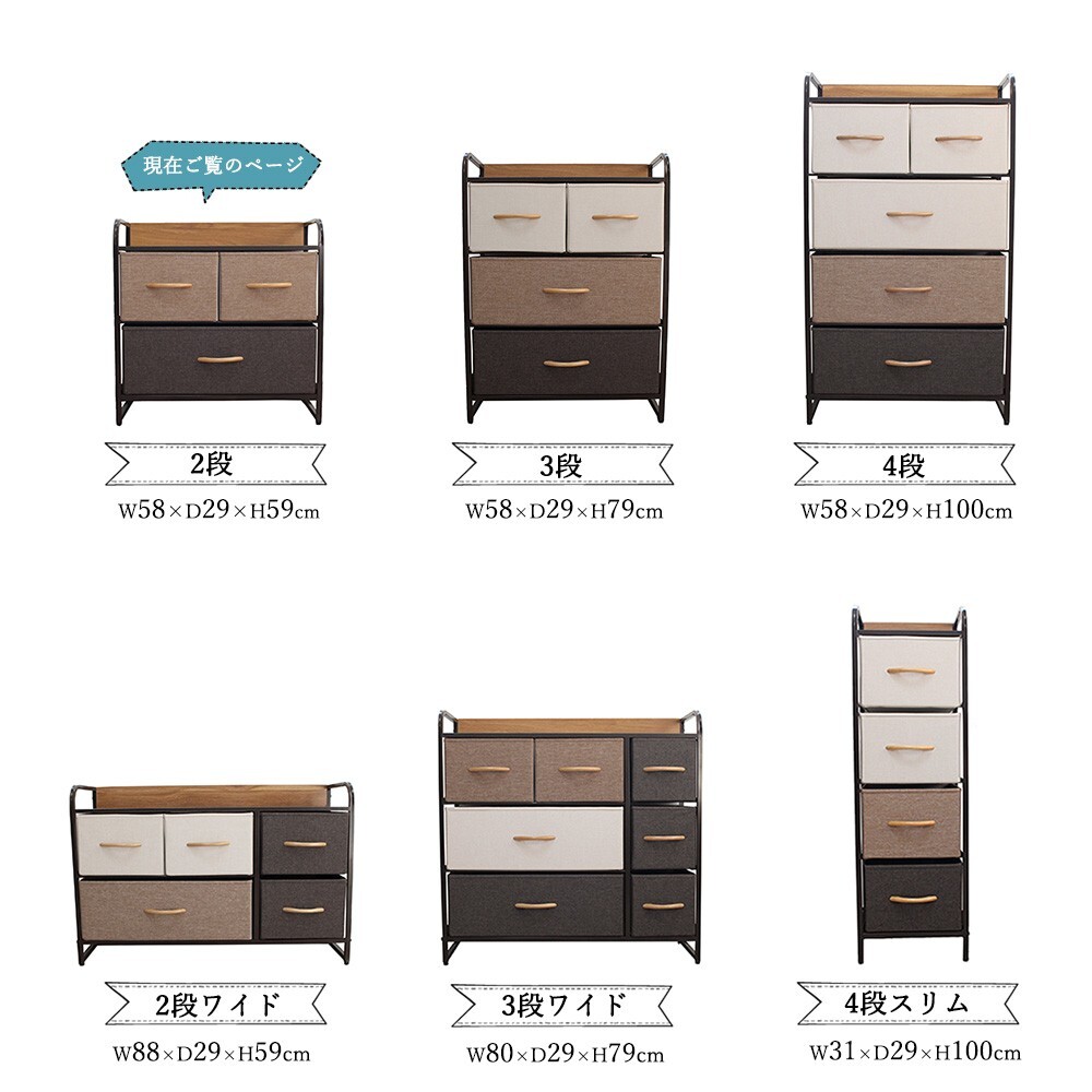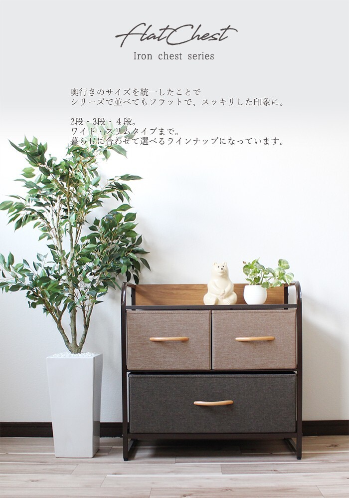 2段チェスト【Flat chest】幅58×奥行29×高さ59cm 収納 ボックス タンス アイアン ウッドトップ リネン シンプル 北欧