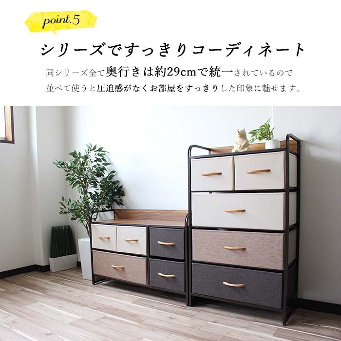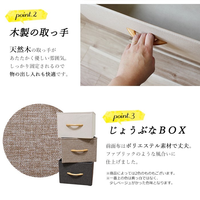 引出(前面):ポリエステル(心材MDF)側面・背面・底板:不織布