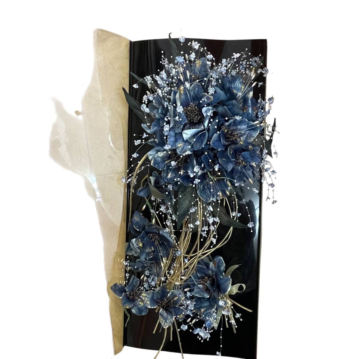 【中古】ウェディングブーケ キャスケードブーケ 造花 ブートニア 髪飾り ケース幅約70cm×奥行約30cm×高さ約20cm 長期保管品◆D10-044
